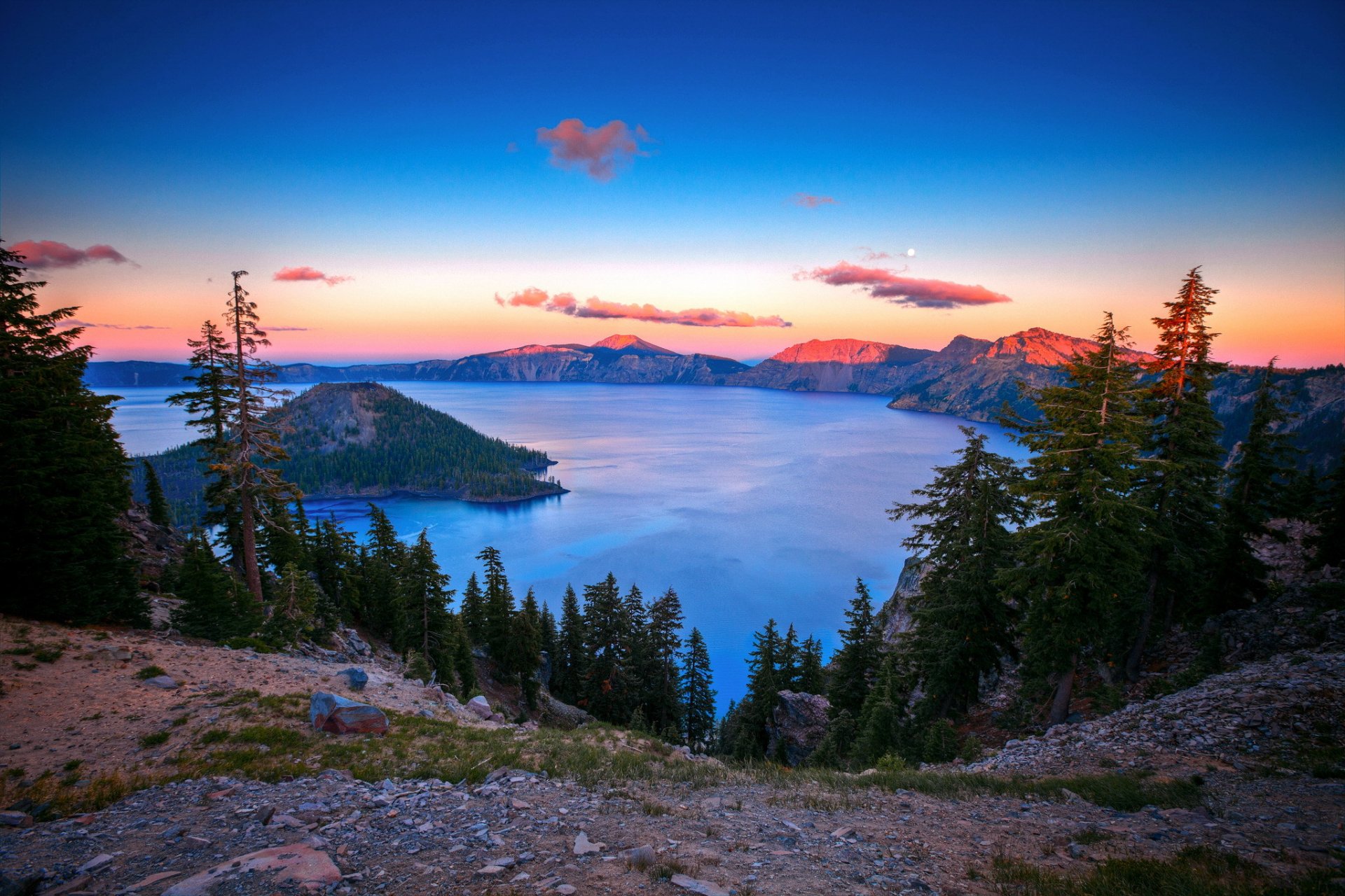 Mountain lake at sunset