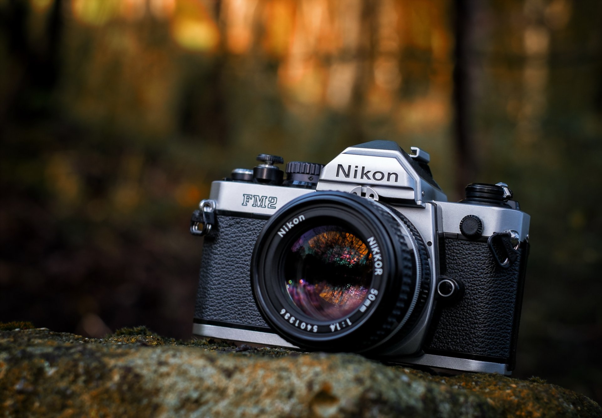 Camera on a stone on a blurry background