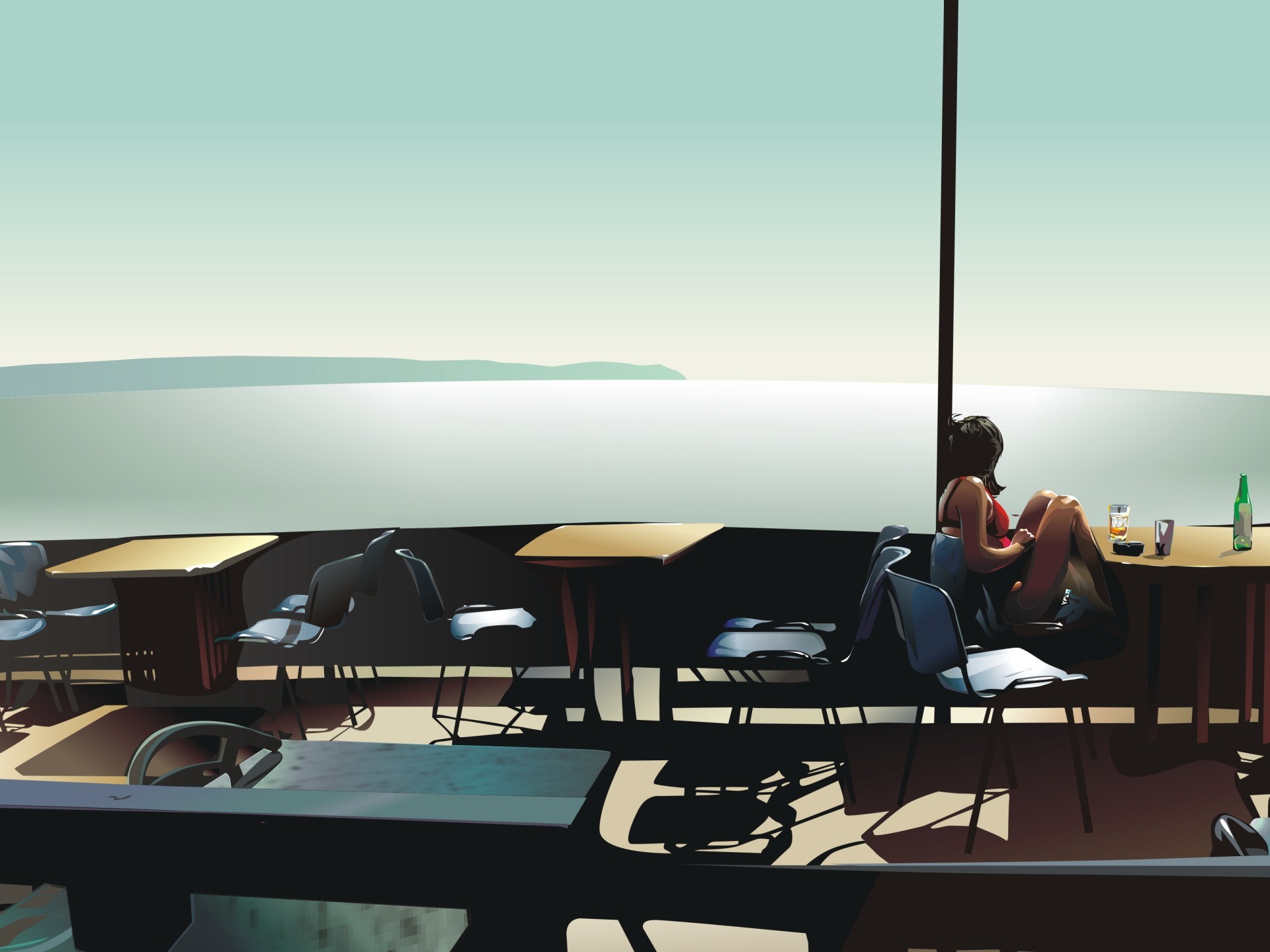 A burning light bulb above the table at which a sleeping cartoon cat is sittingA burning light bulb above the table at which a sleeping cartoon cat is sitting