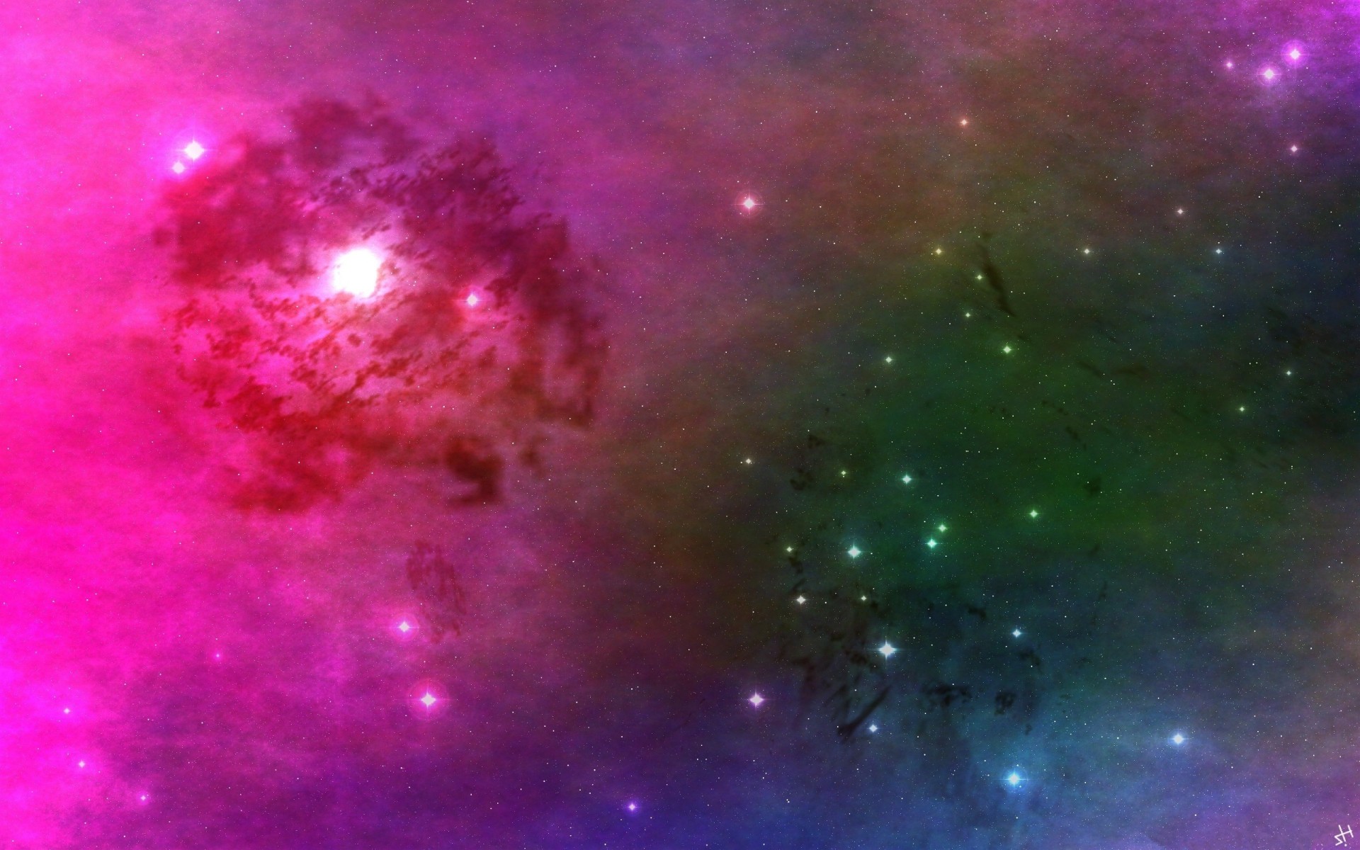 A fantasy image of the sky in lilac tones with stars and airplanes