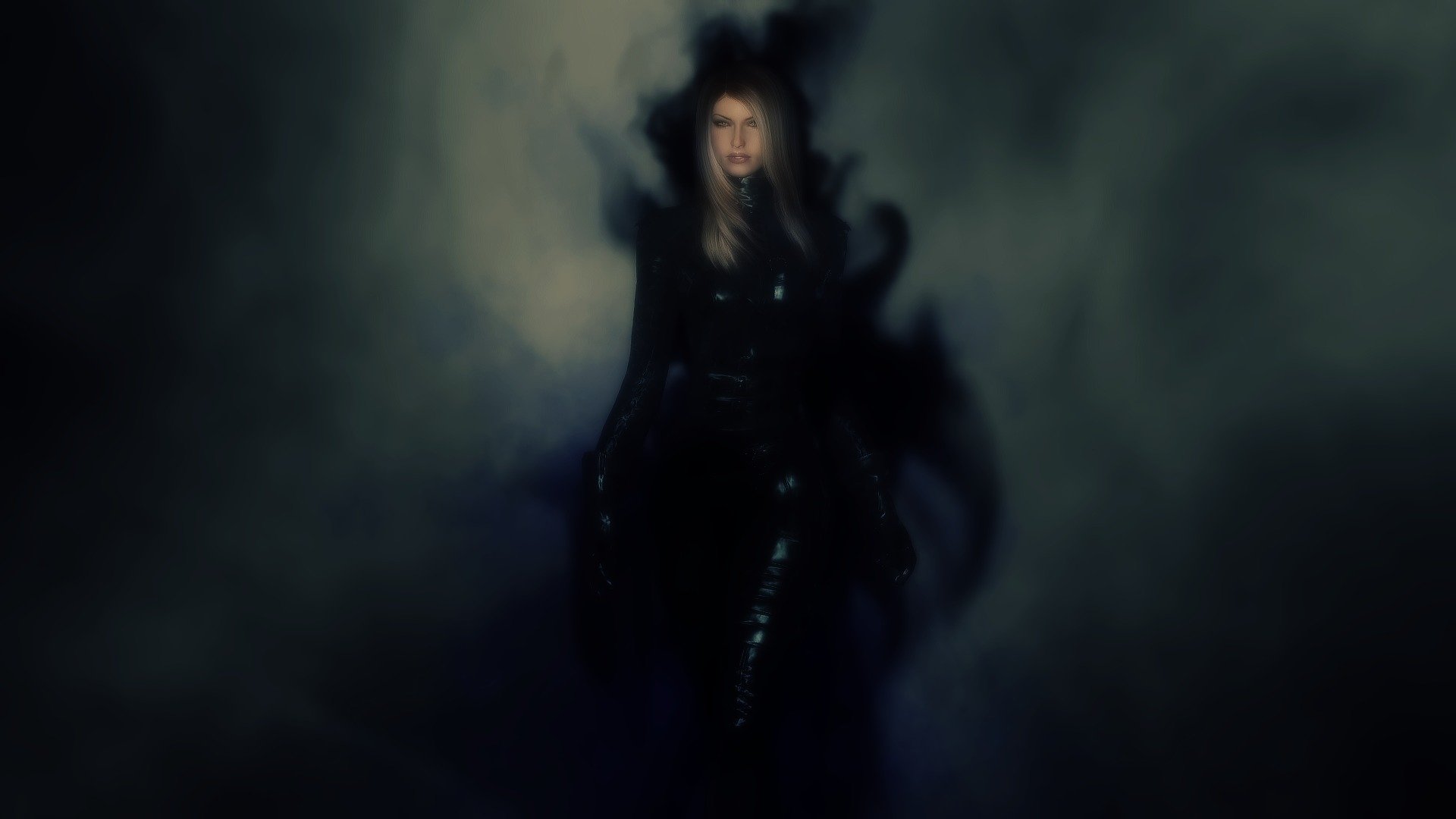 A beautiful blue-eyed brown-haired woman looks into the cameraA beautiful blue-eyed brown-haired woman looks into the camera