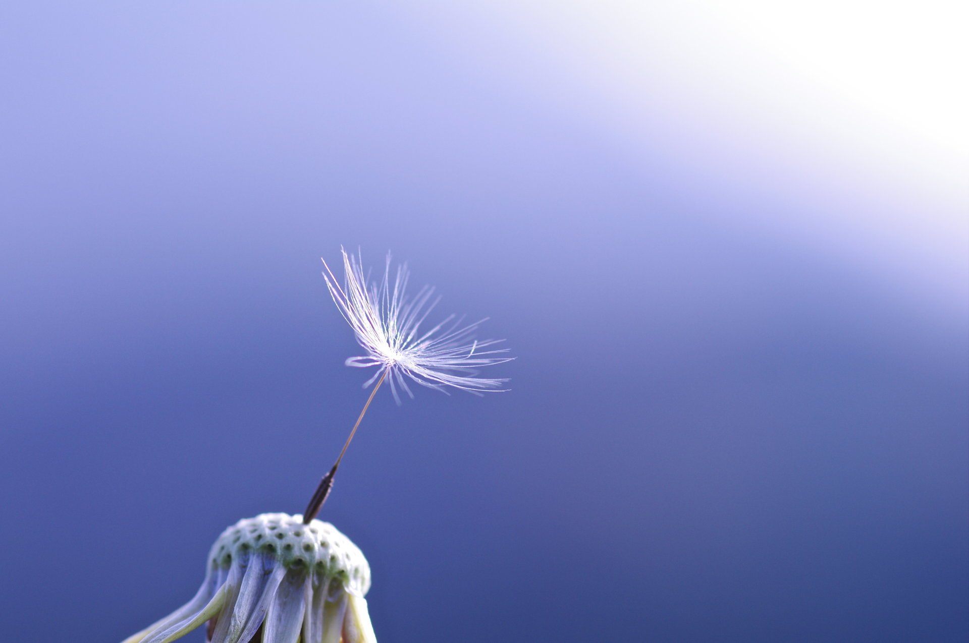 Macro shooting of a dandelion on a blue background