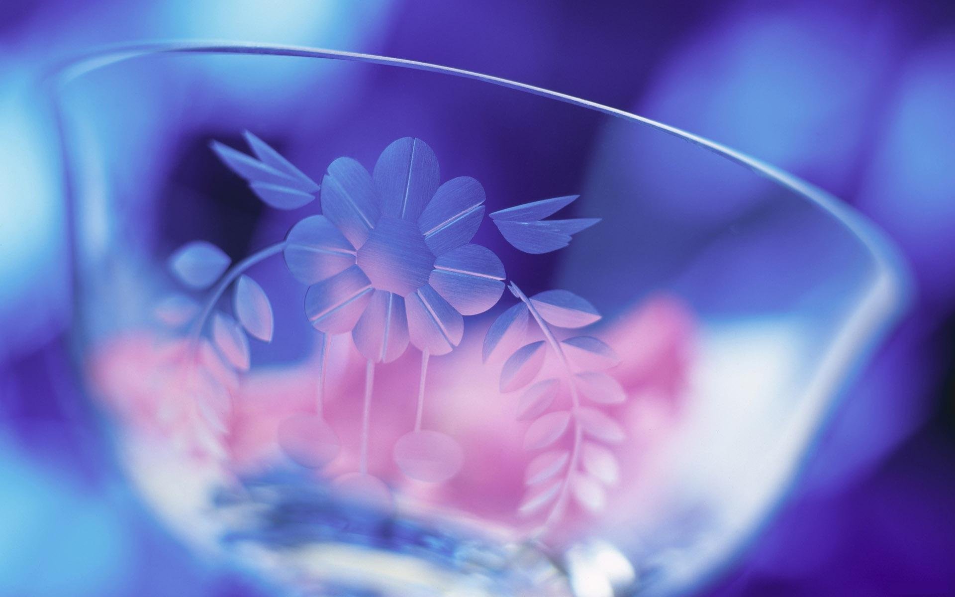 Blue glass flowers with purple petals