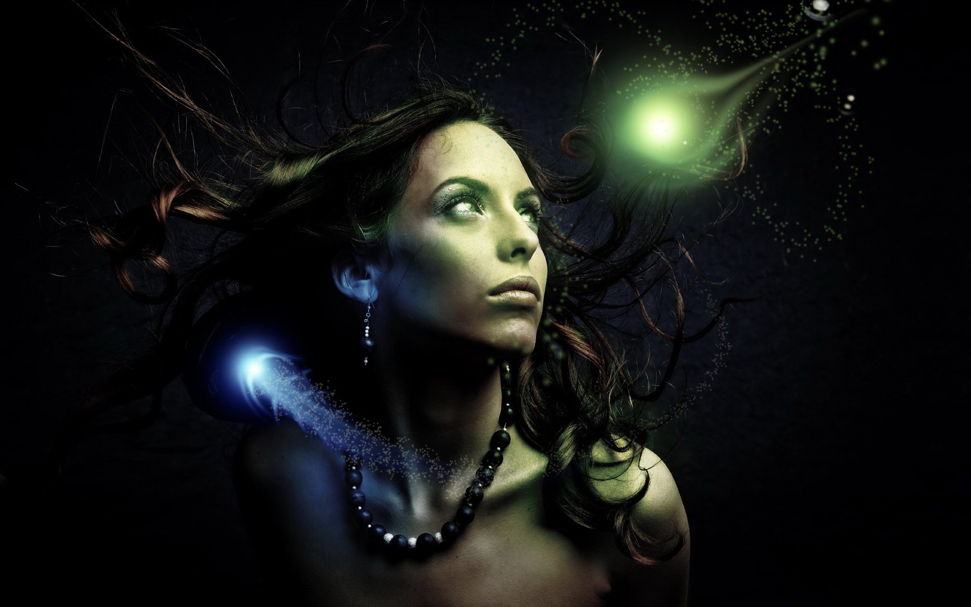 A girl in a corset and beads in her hand stands and looks down thoughtfullyA girl in a corset and beads in her hand stands and looks down thoughtfully