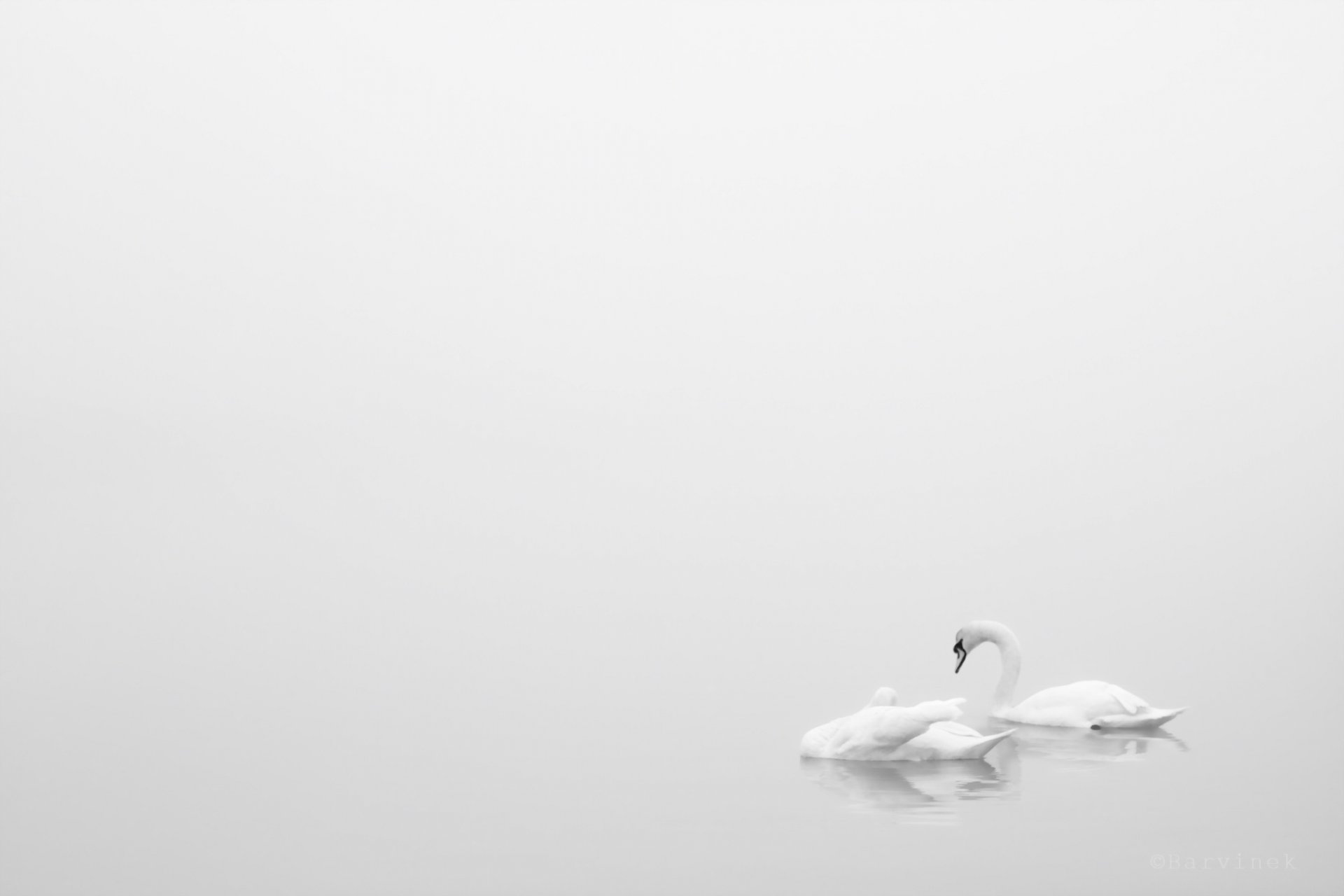 White swans in nature