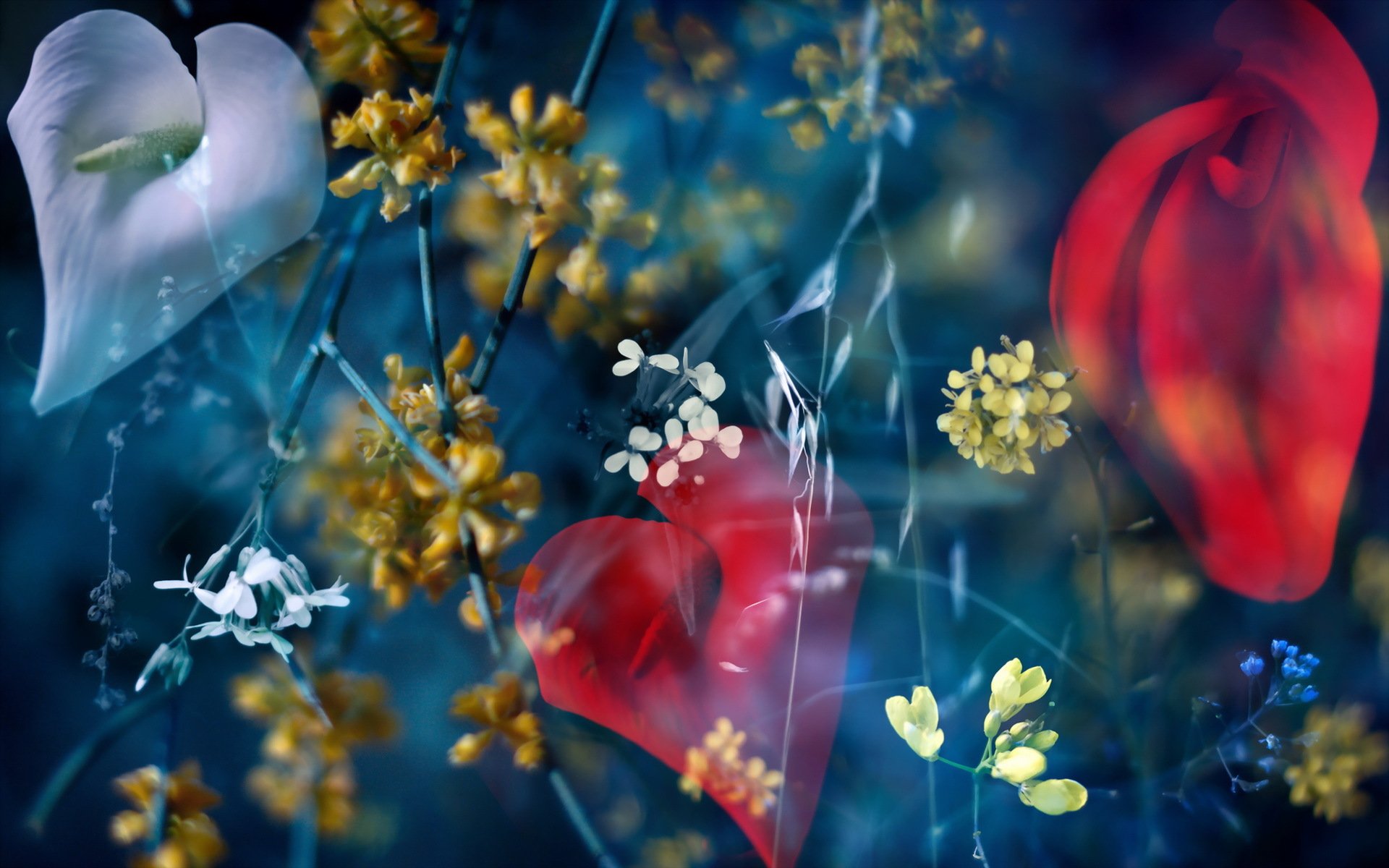 Red and white flowers on a blue background