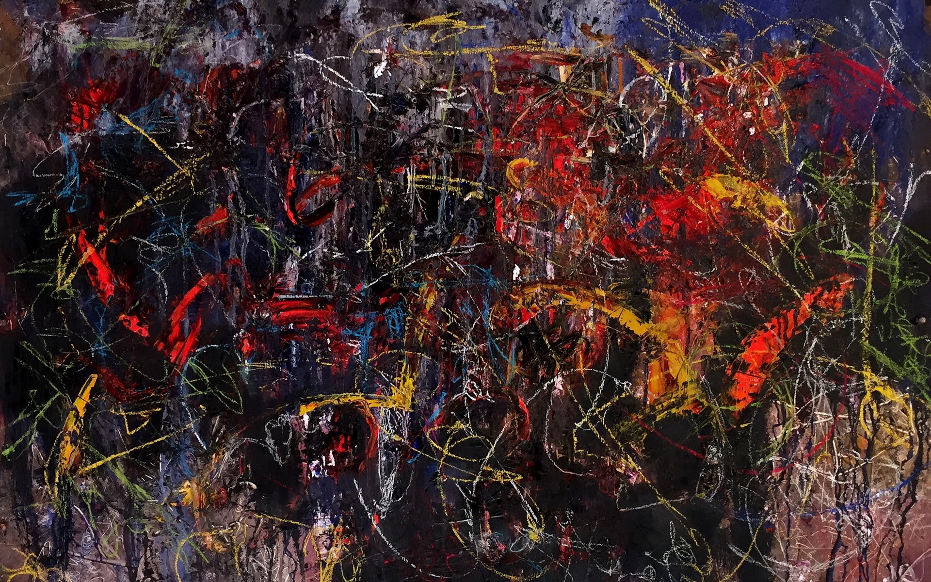 The drawing on the wall background is multicolored
