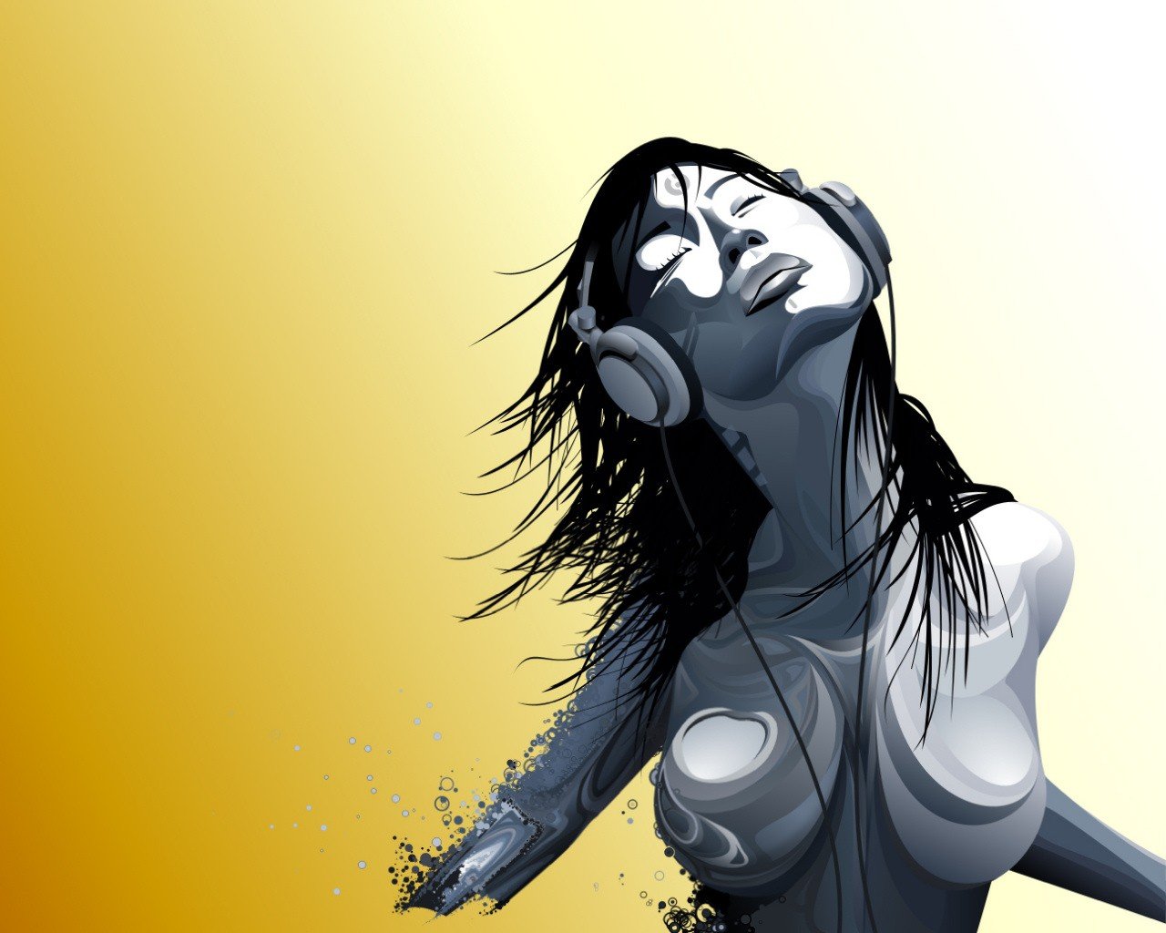 A girl listens to music with headphones