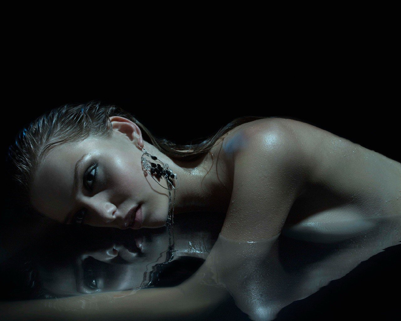 The girl bathed and got tired at sunset and lies nakedThe girl bathed and got tired at sunset and lies naked