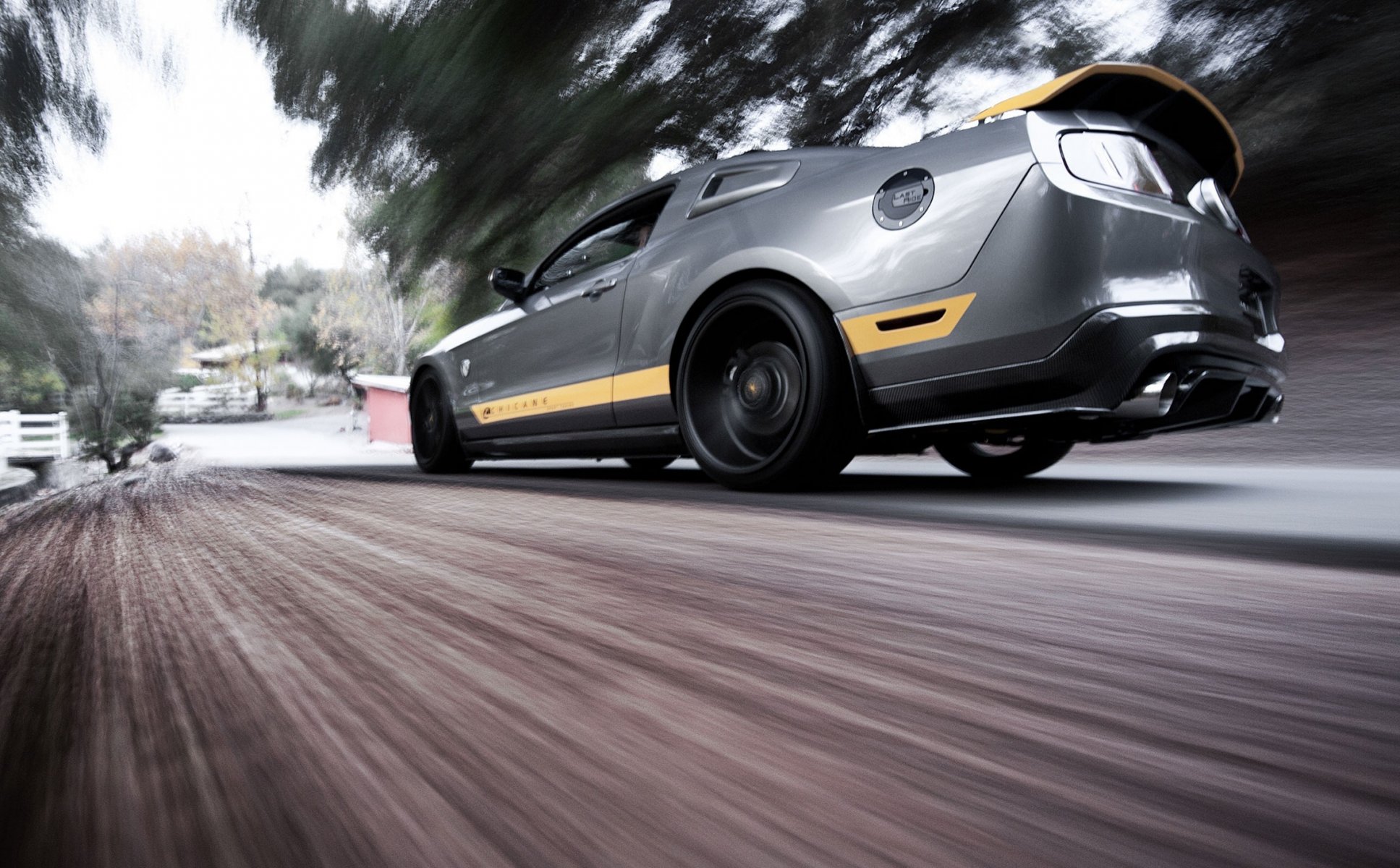 On the highway against the background of the forest, a Subaru impreza is rushing at full speed