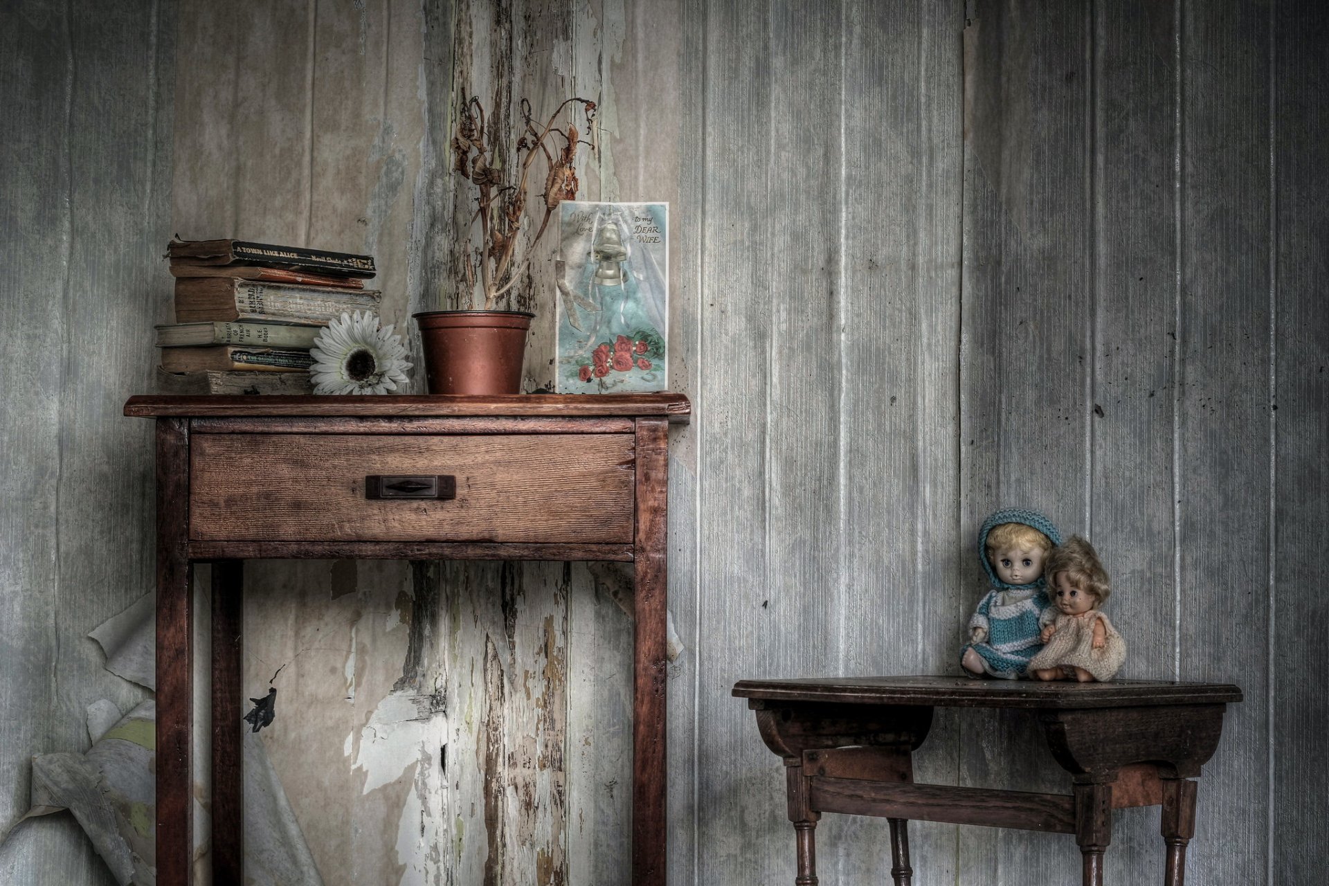 Furniture and toys on the background of an old wallFurniture and toys on the background of an old wall