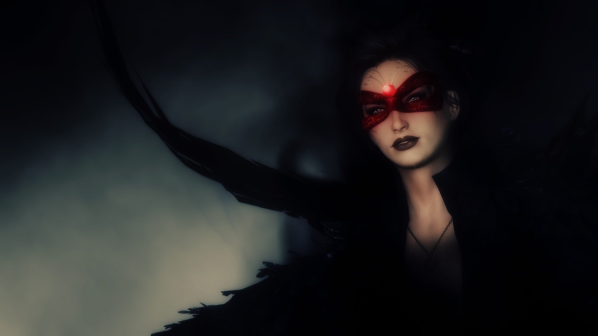 The girl with wings fixed her sinister gaze into the distanceThe girl with wings fixed her sinister gaze into the distance