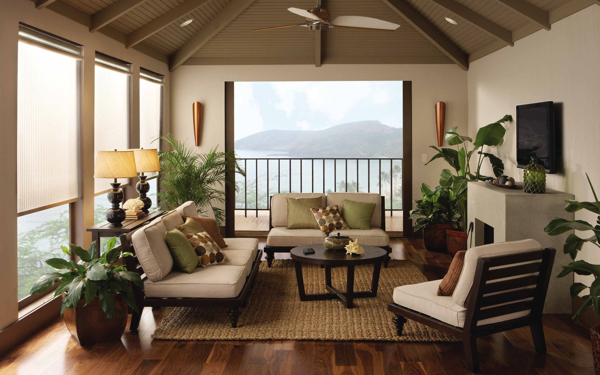 The interior of a luxury room in a resort hotel with a fireplace and access to the terraceThe interior of a luxury room in a resort hotel with a fireplace and access to the terrace