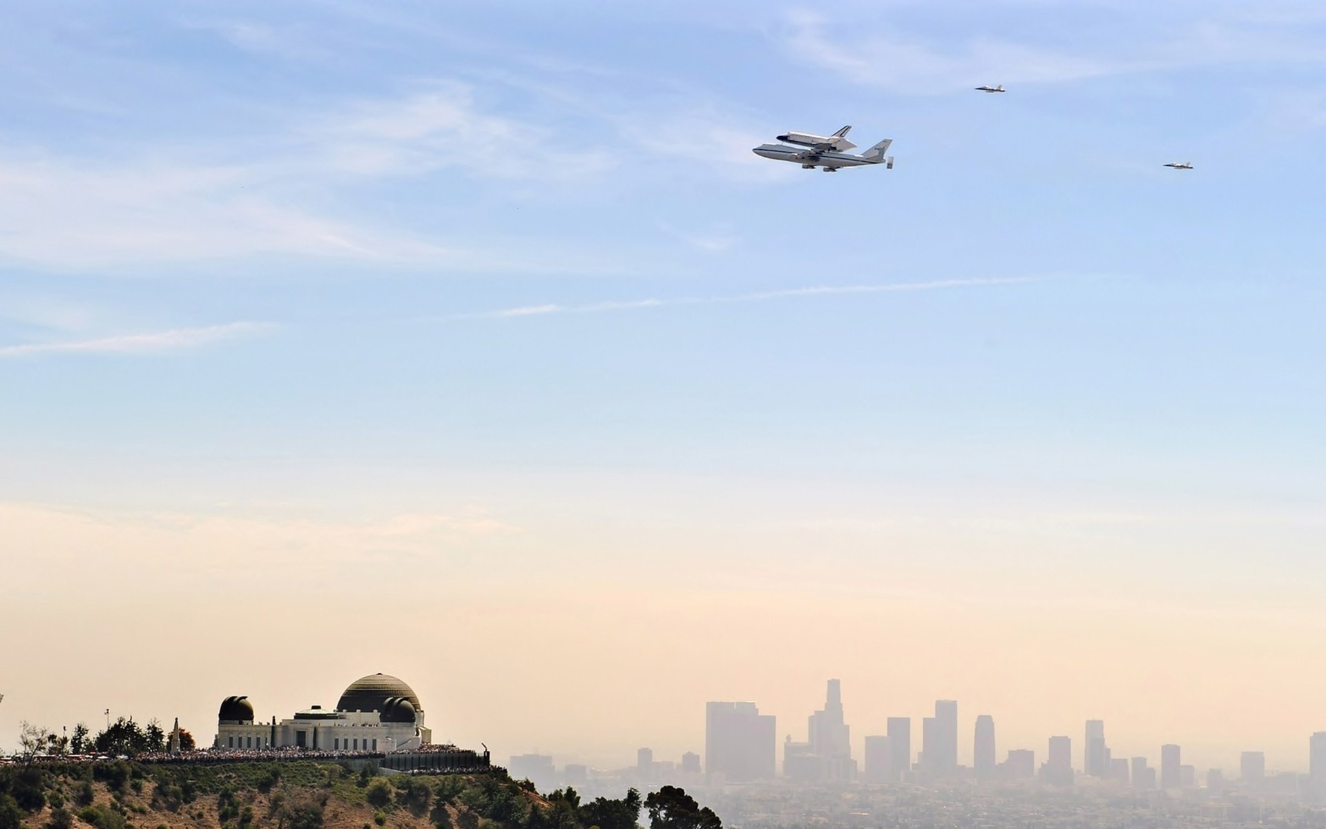 A military plane in flight against the background of a pavilionA military plane in flight against the background of a pavilion