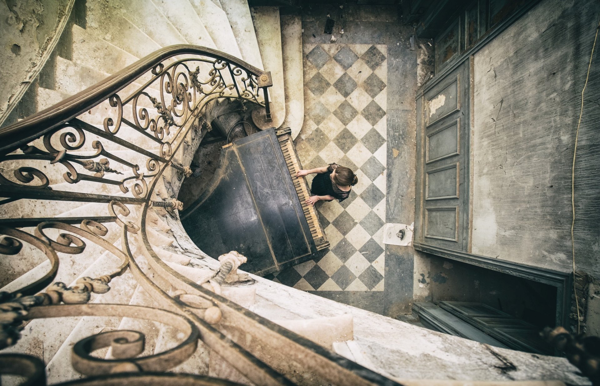 Gloomy atmosphere. a lonely skeleton playing dead music on the pianoGloomy atmosphere. A lonely skeleton playing dead music on the piano