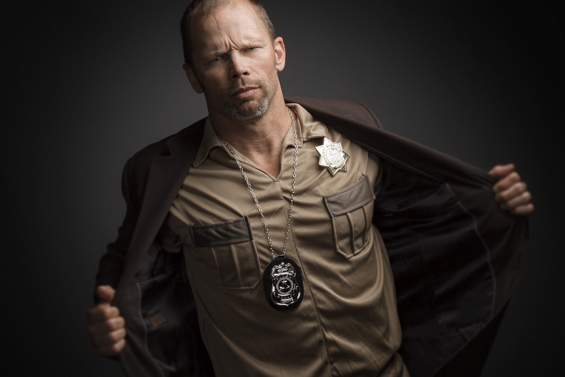 A shot from the movie with the police and the killerA shot from the movie with the police and the killer