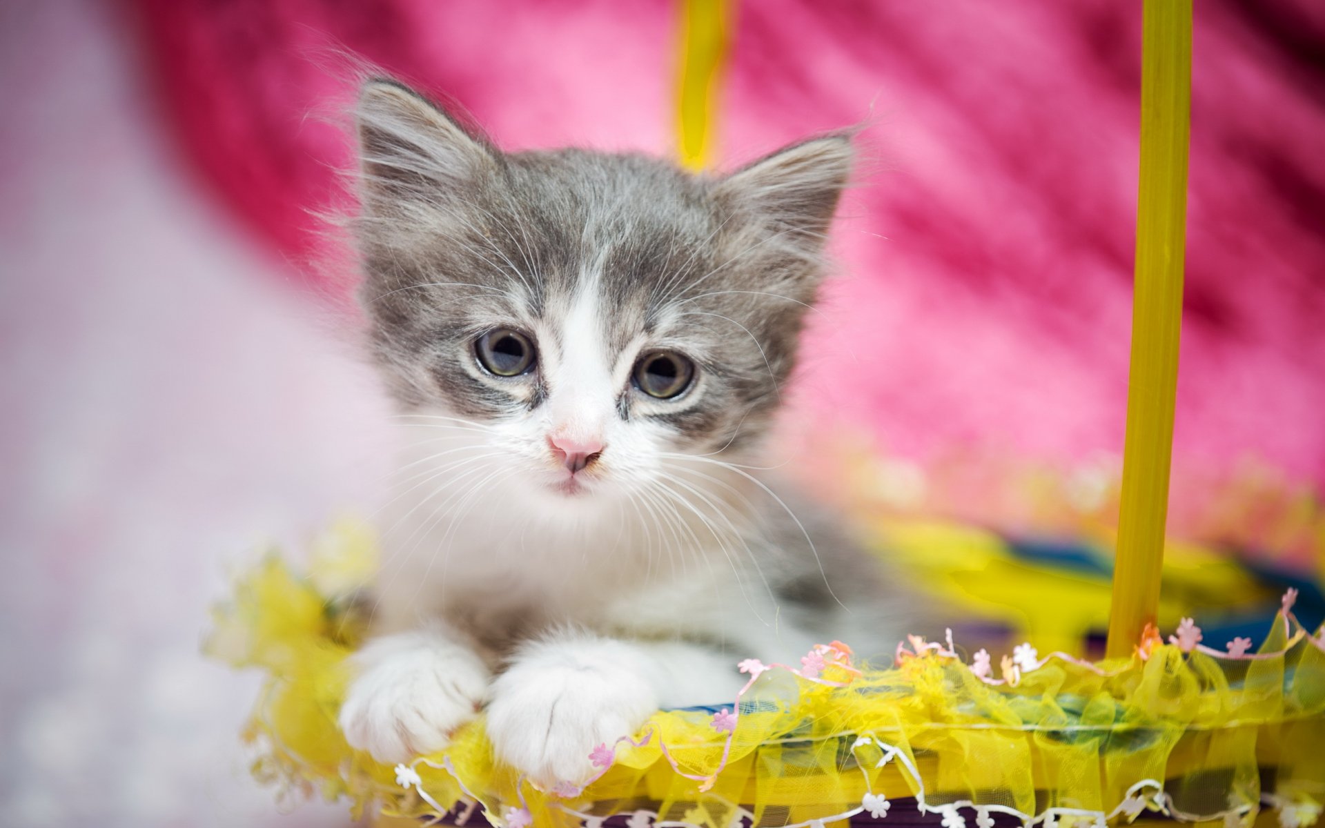 Cute kitten in a basket. Gift