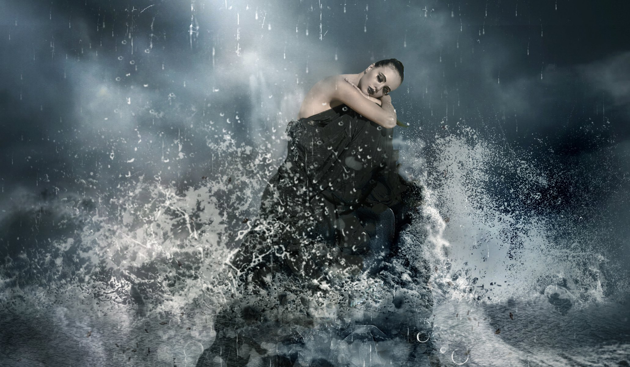 Processed photo of a girl on the water with splashes