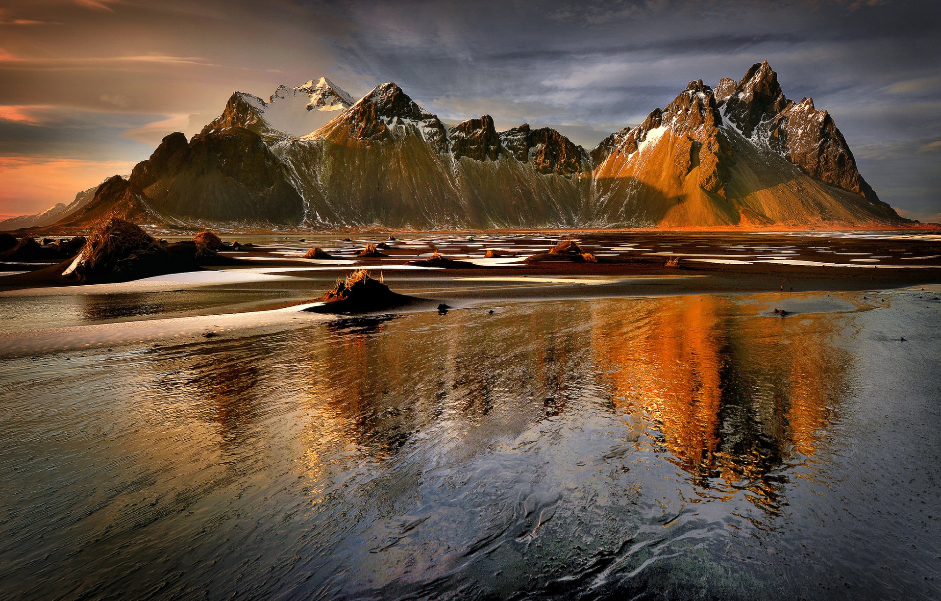 Water against the background of mountains and sunset skyWater against the background of mountains and sunset sky