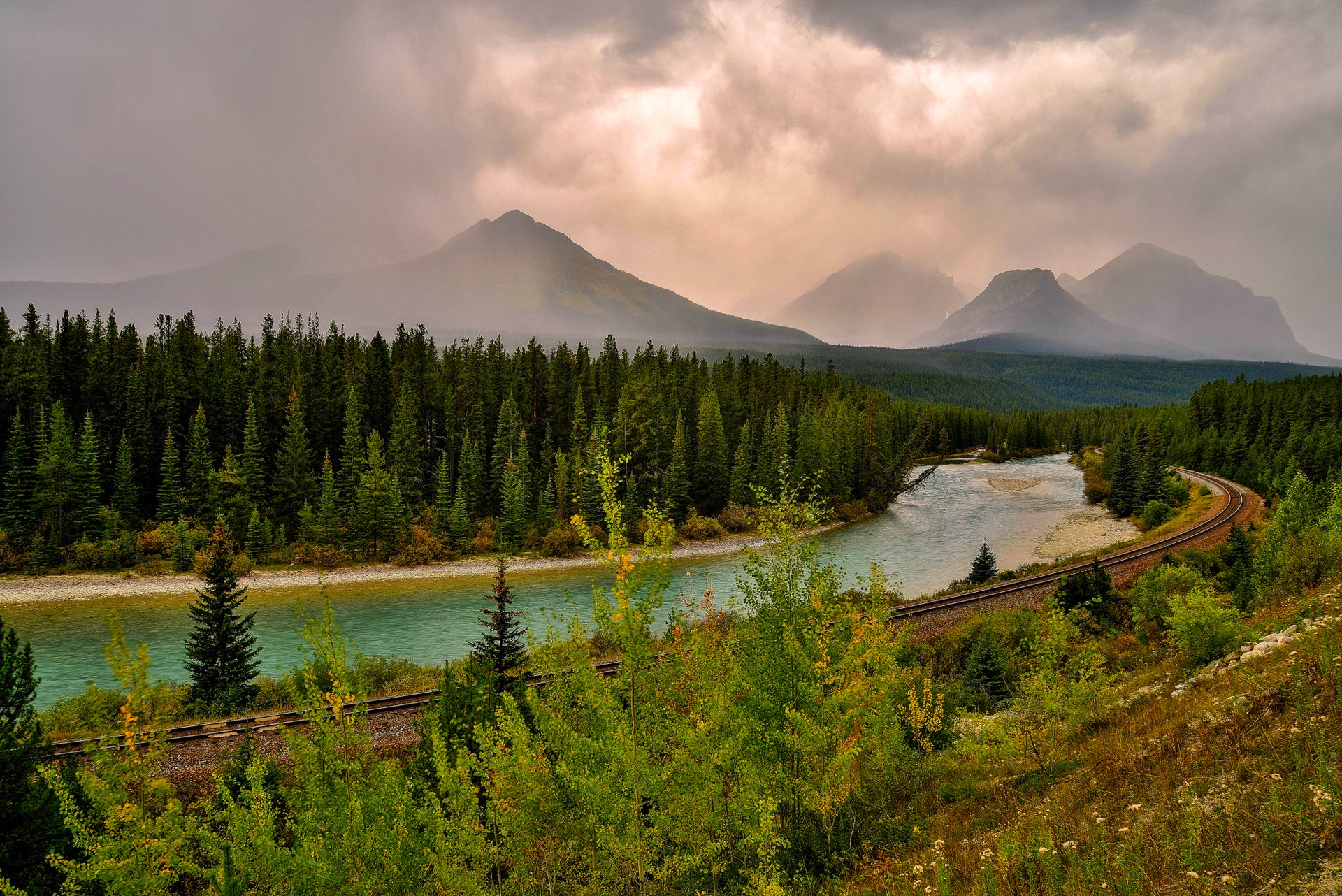 Red train on the background of snow-covered glaciersRed train on the background of snow-covered glaciers