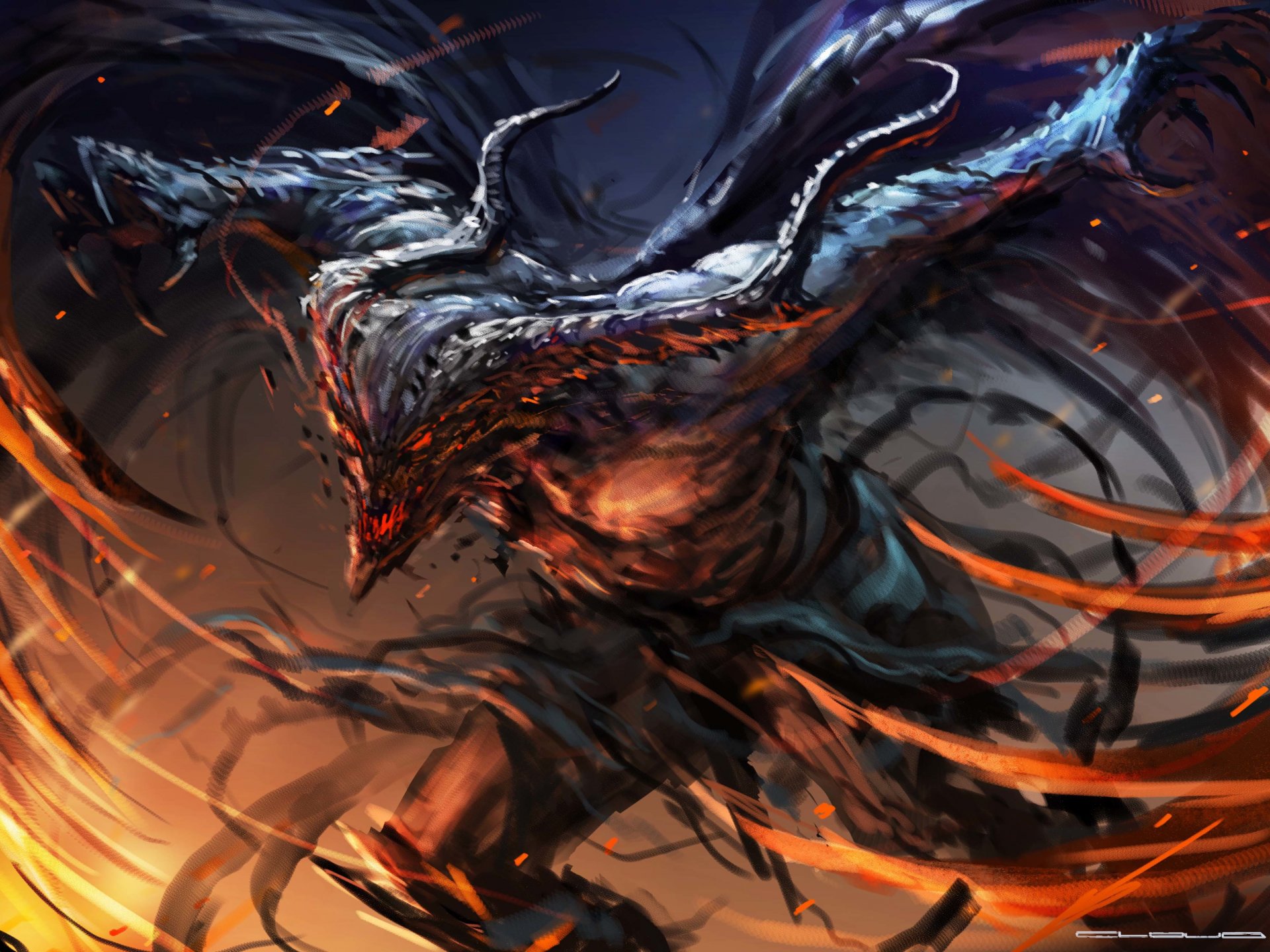Art guy is a demon with wings in black and red armorArt guy is a demon with wings in black and red armor