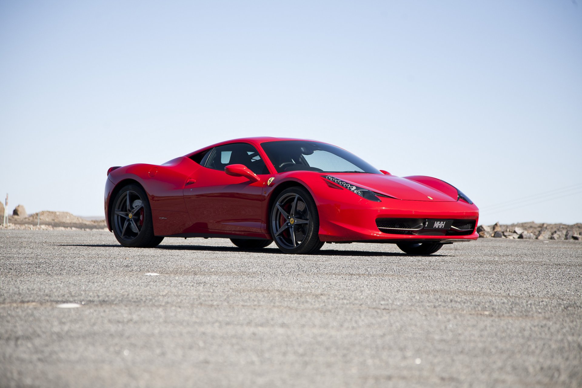 Red powerful Dodge Viper rides on the road against the background of the sea