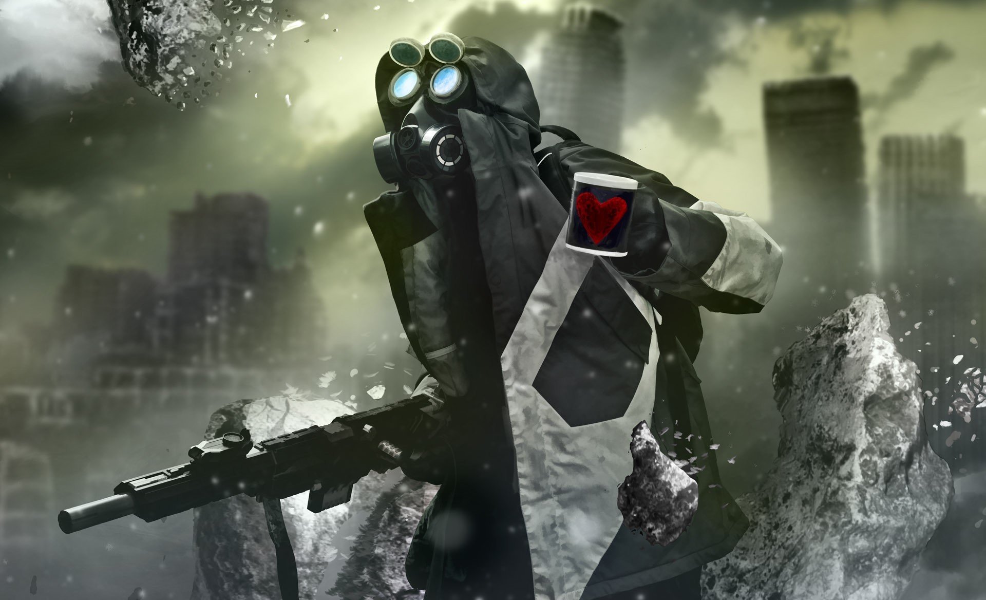The film the sky saw everything. the post-apocalypse zone. the hood of the male hero. black and white cinemaThe film the sky saw everything. The post-apocalypse zone. The hood of the male hero. Black and white cinema