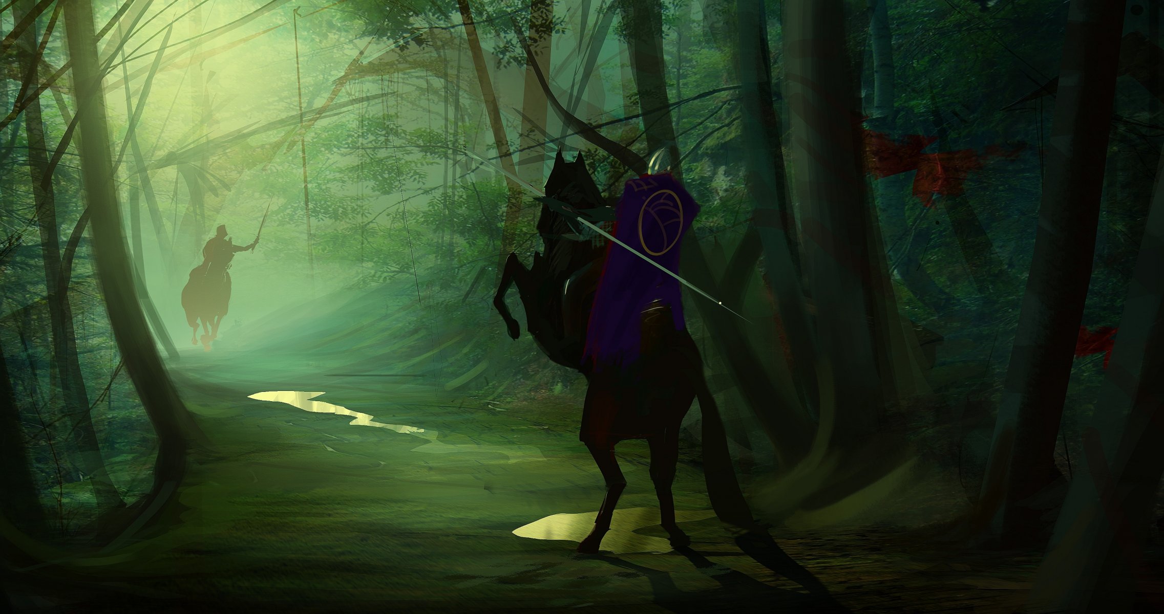Image of a bright yellow pyramid on the background of sunset, riders in the desertImage of a bright yellow pyramid on the background of sunset, riders in the desert