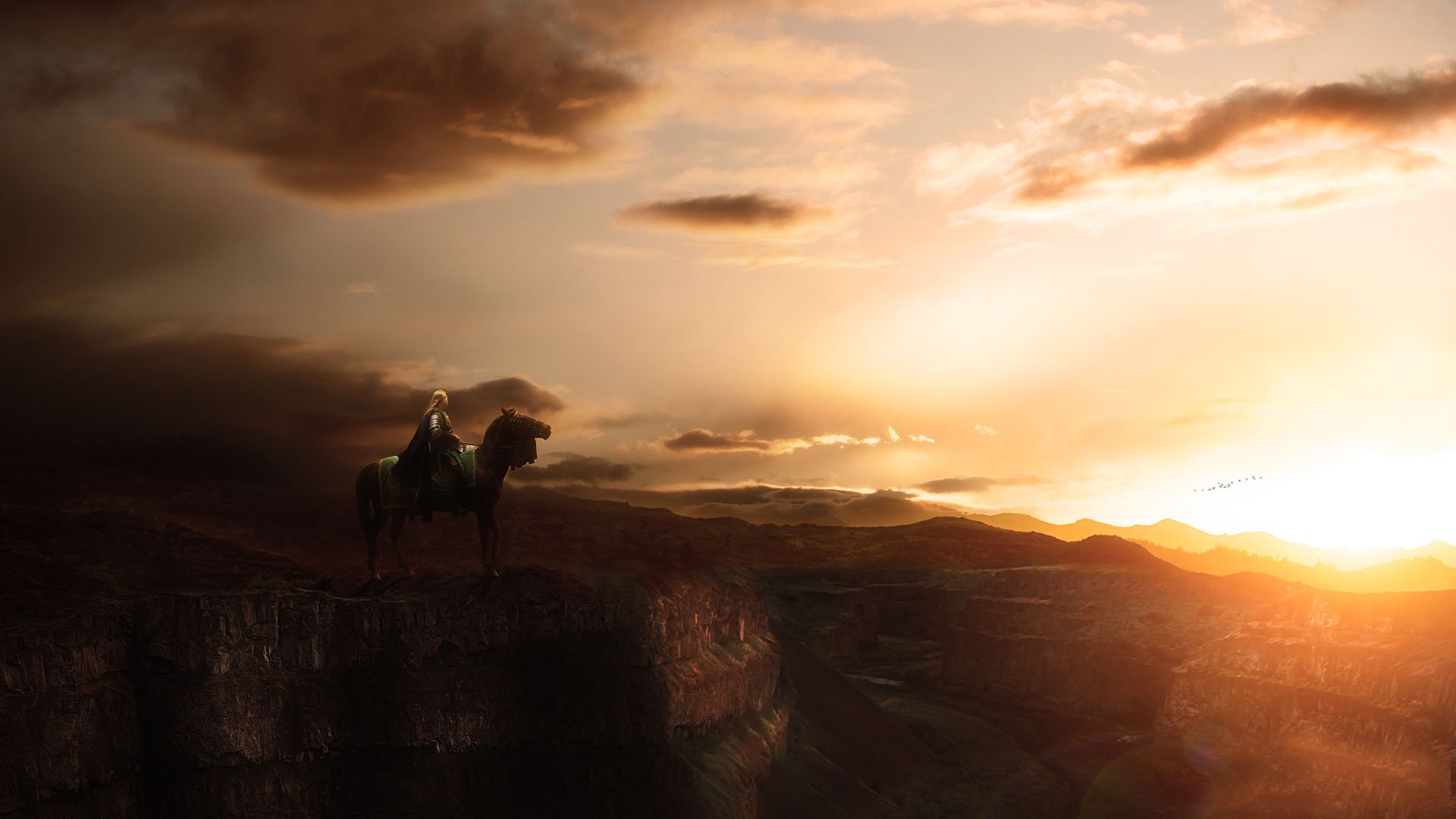 Assassins creed rider in the forest opposite the pyramidAssassins creed rider in the forest opposite the pyramid