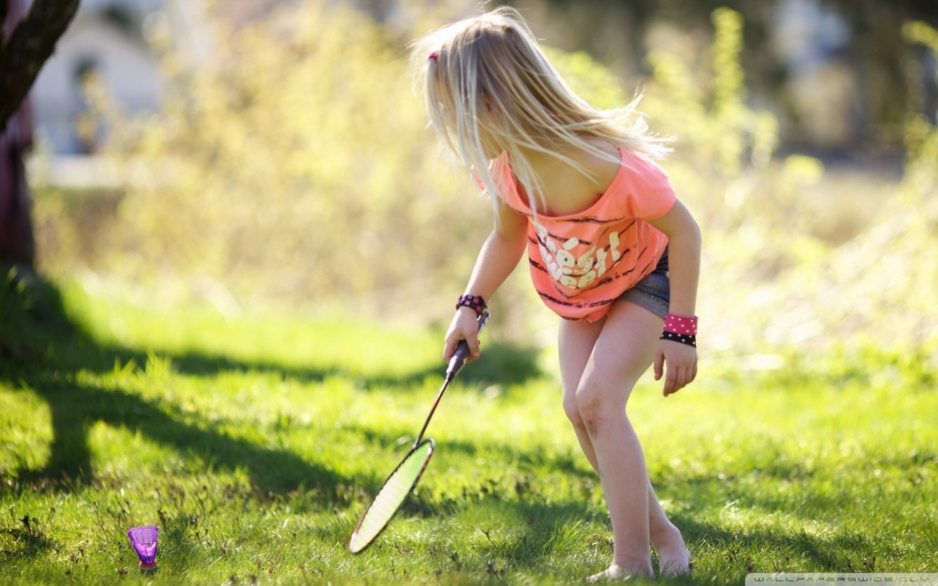 A blonde rocker girl in a red bra, a plaid skirt, fishnet stockings and red shoes plays an electric guitar
