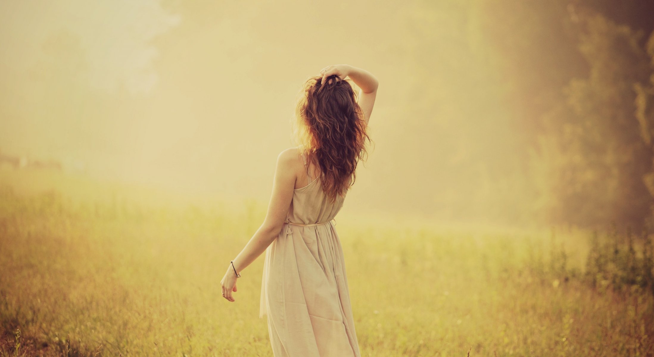 A girl standing with her back against the background of natureA girl standing with her back against the background of nature