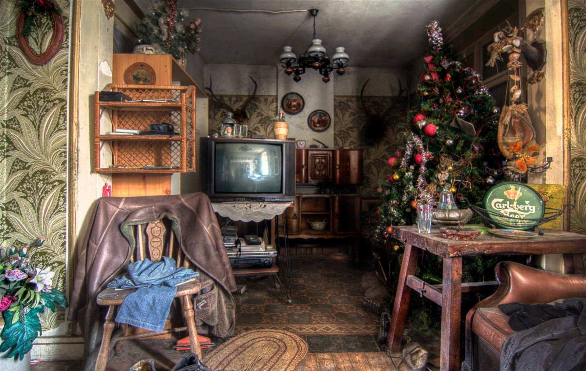 A romantic evening in a room with dim lights and a tvA romantic evening in a room with dim lights and a TV