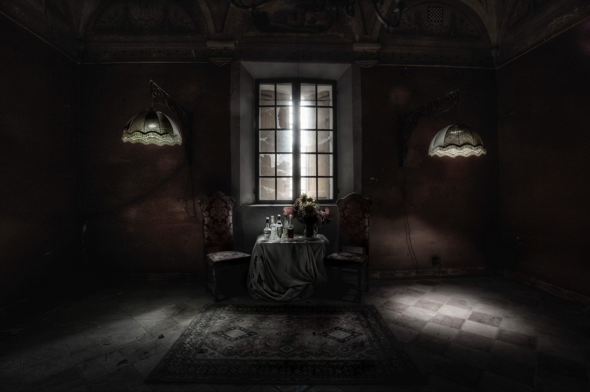 A chair in a gloomy old room