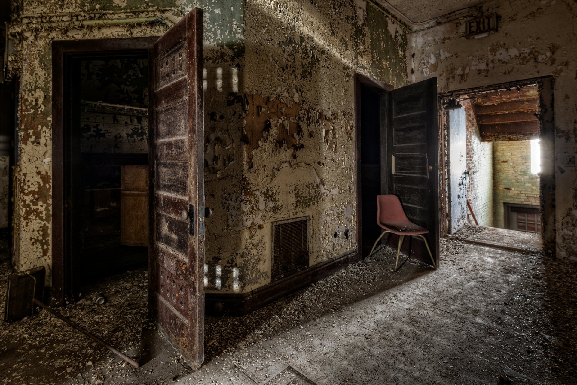 The interior of an abandoned room with a fireplaceThe interior of an abandoned room with a fireplace
