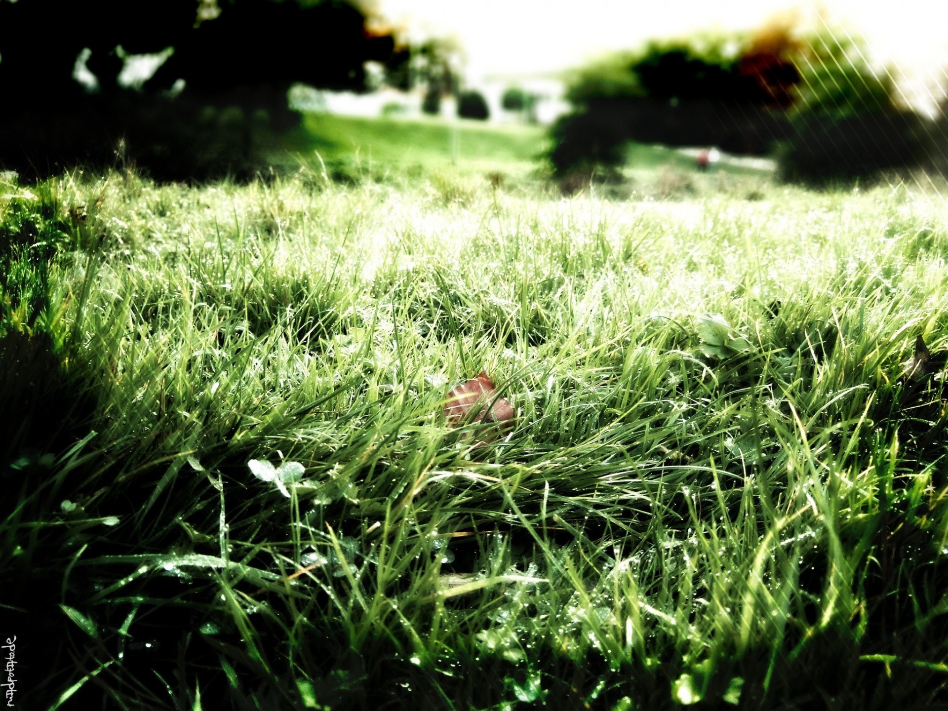 Morning dew on the grass, close-up