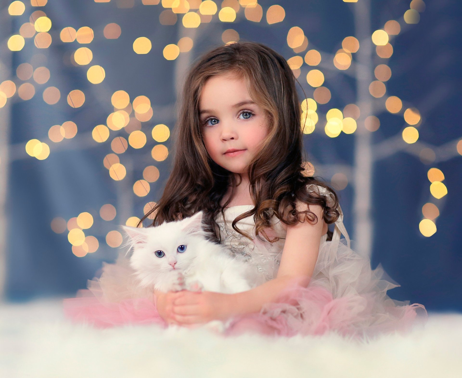 Photo of a girl with a white cat