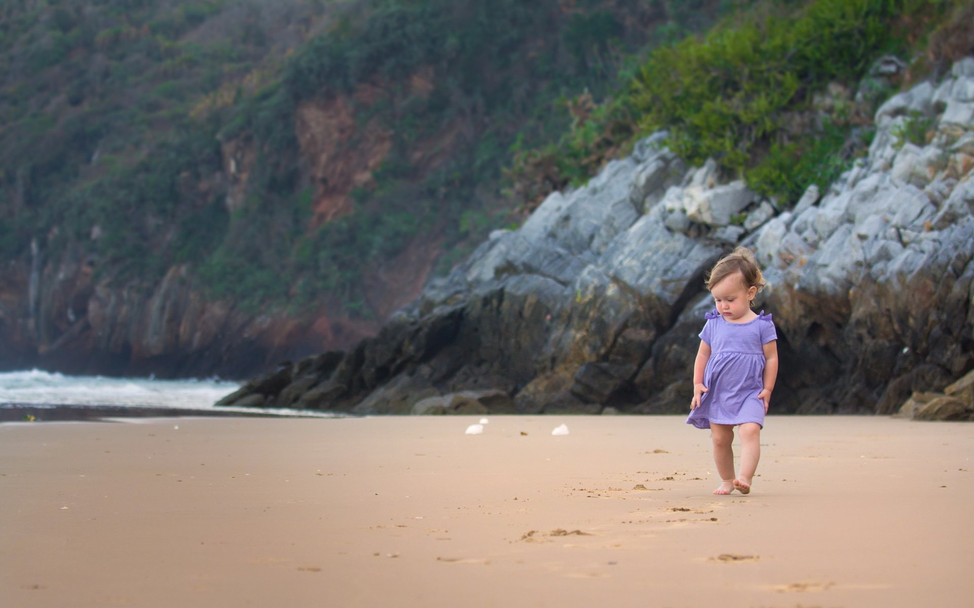 Baby's walk along the ocean