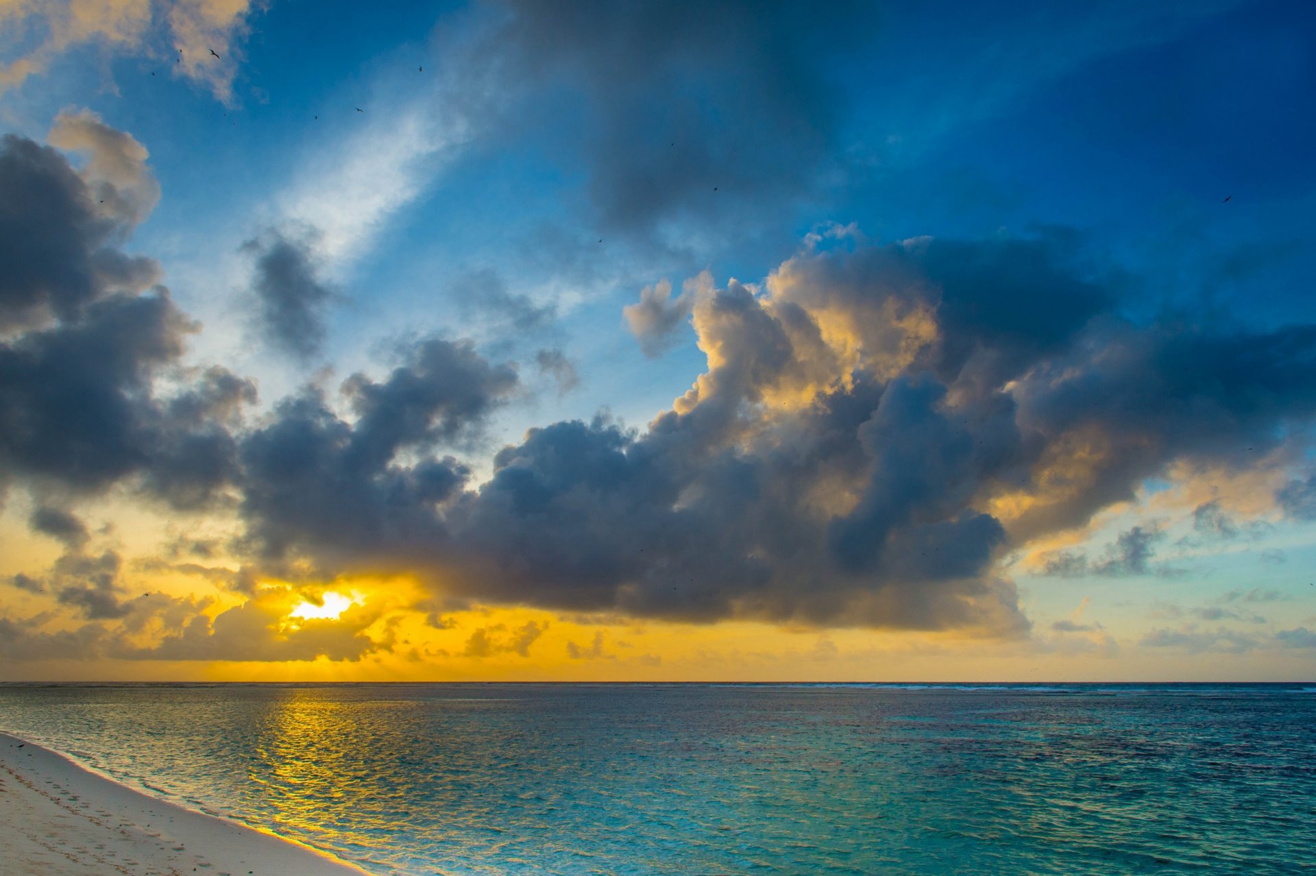 Ocean shore against the background of the setting sunOcean shore against the background of the setting sun