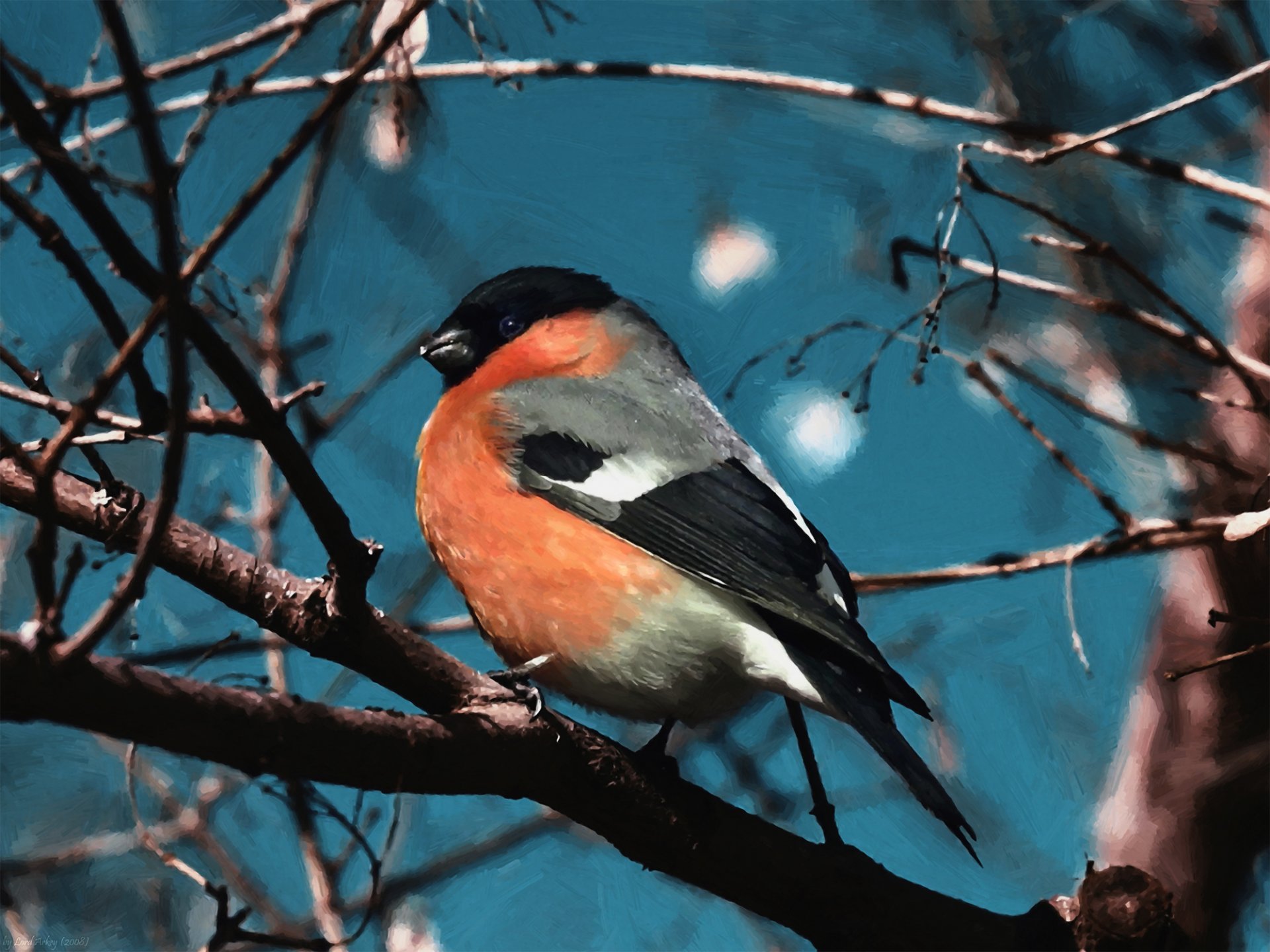 Beautiful view of the water with rocks protruding from it, blue sky and red trees in the distanceBeautiful view of the water with rocks protruding from it, blue sky and red trees in the distance