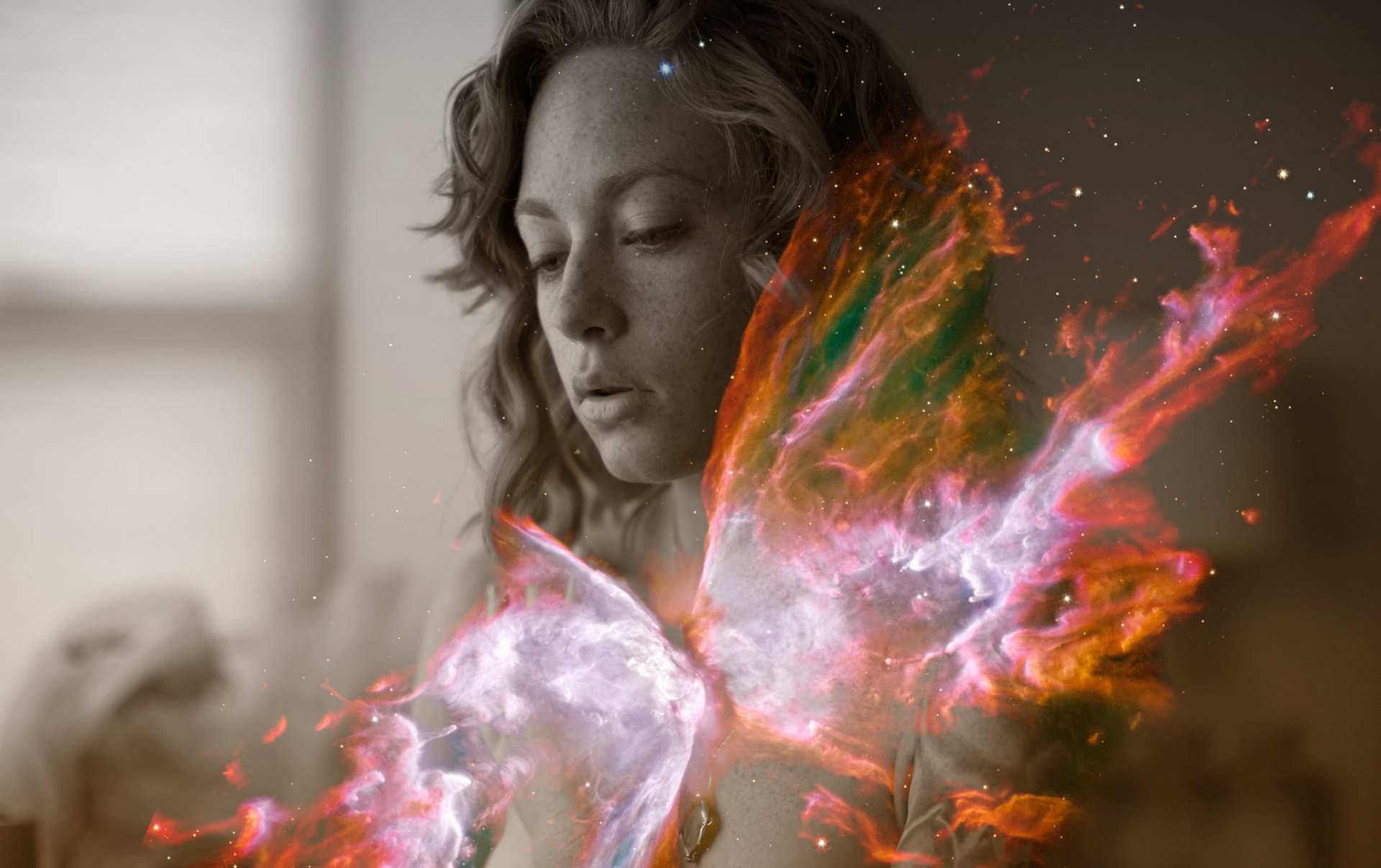 A color explosion on the background of a monochrome picture of a girlA color explosion on the background of a monochrome picture of a girl