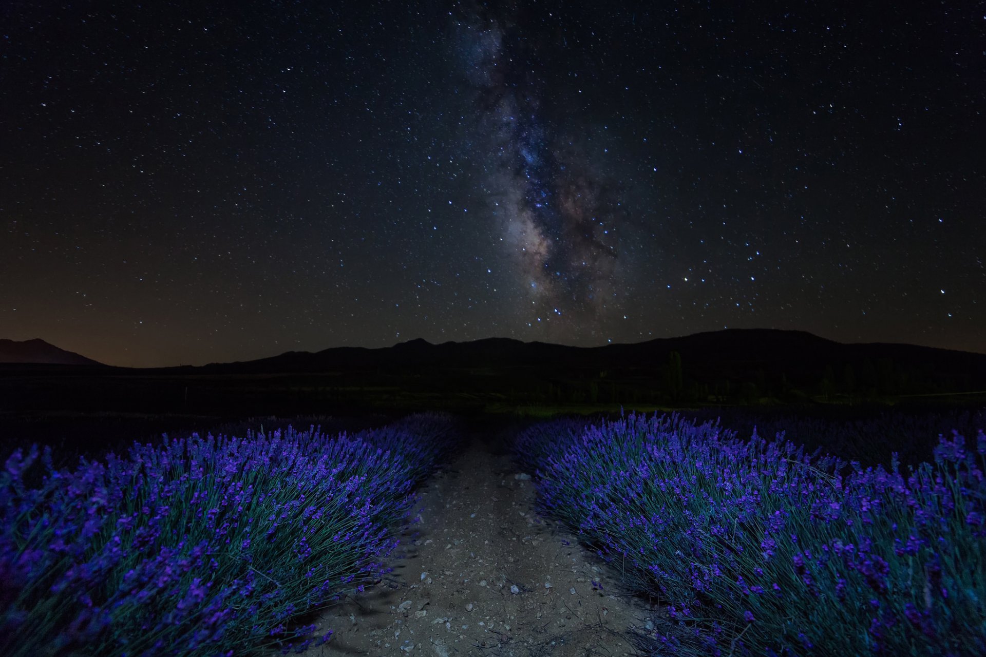 The car stands against the background of the starry skyThe car stands against the background of the starry sky