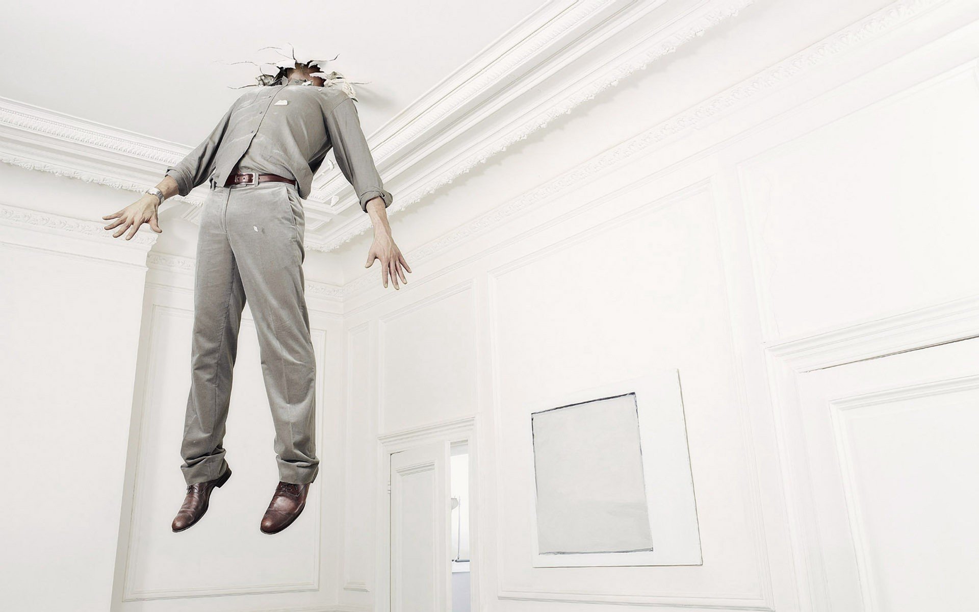 The man punched a hole in the ceiling with his head