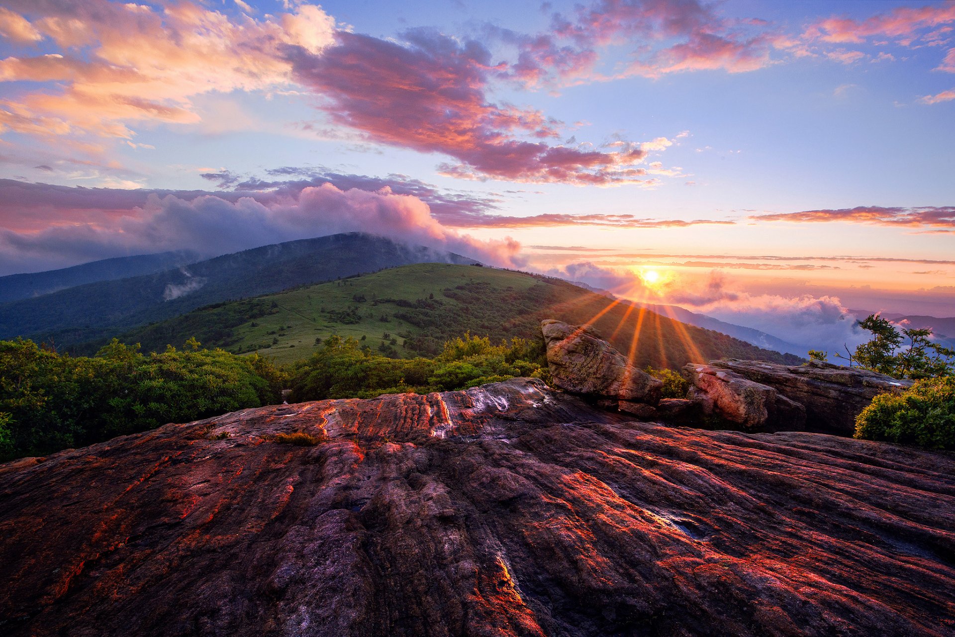 The rays of the sun on the top of the mountain