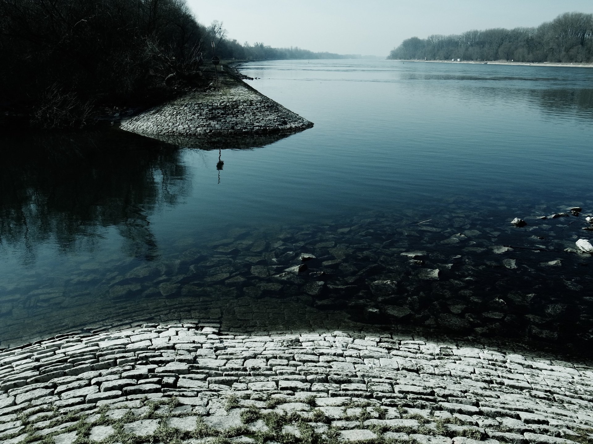 The water surface among the forest and the keystoneThe water surface among the forest and the keystone