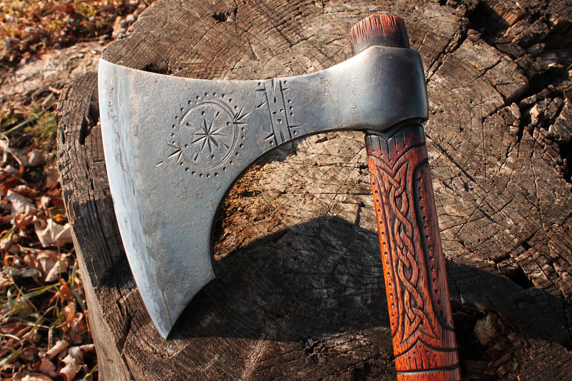 Battle axe with patterns on the stump