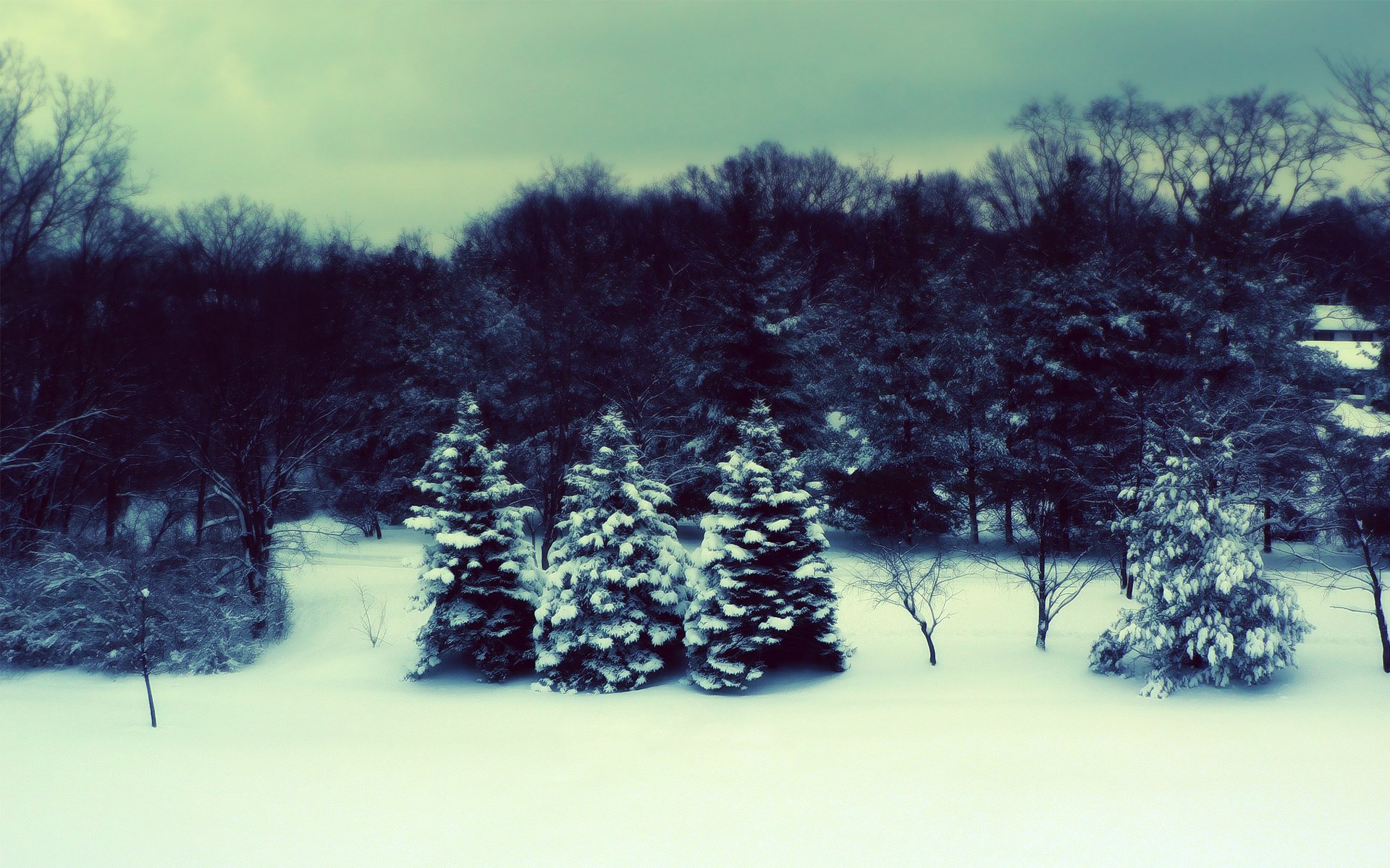 Young christmas trees in the snow in the winter forestYoung Christmas trees in the snow in the winter forest