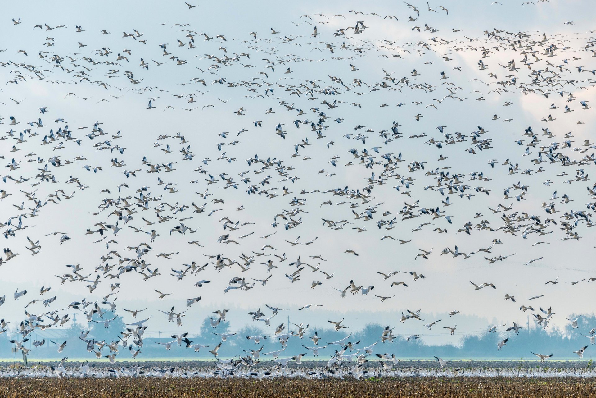 The falcon crouched on the rocks, next to him small bushes with flowers