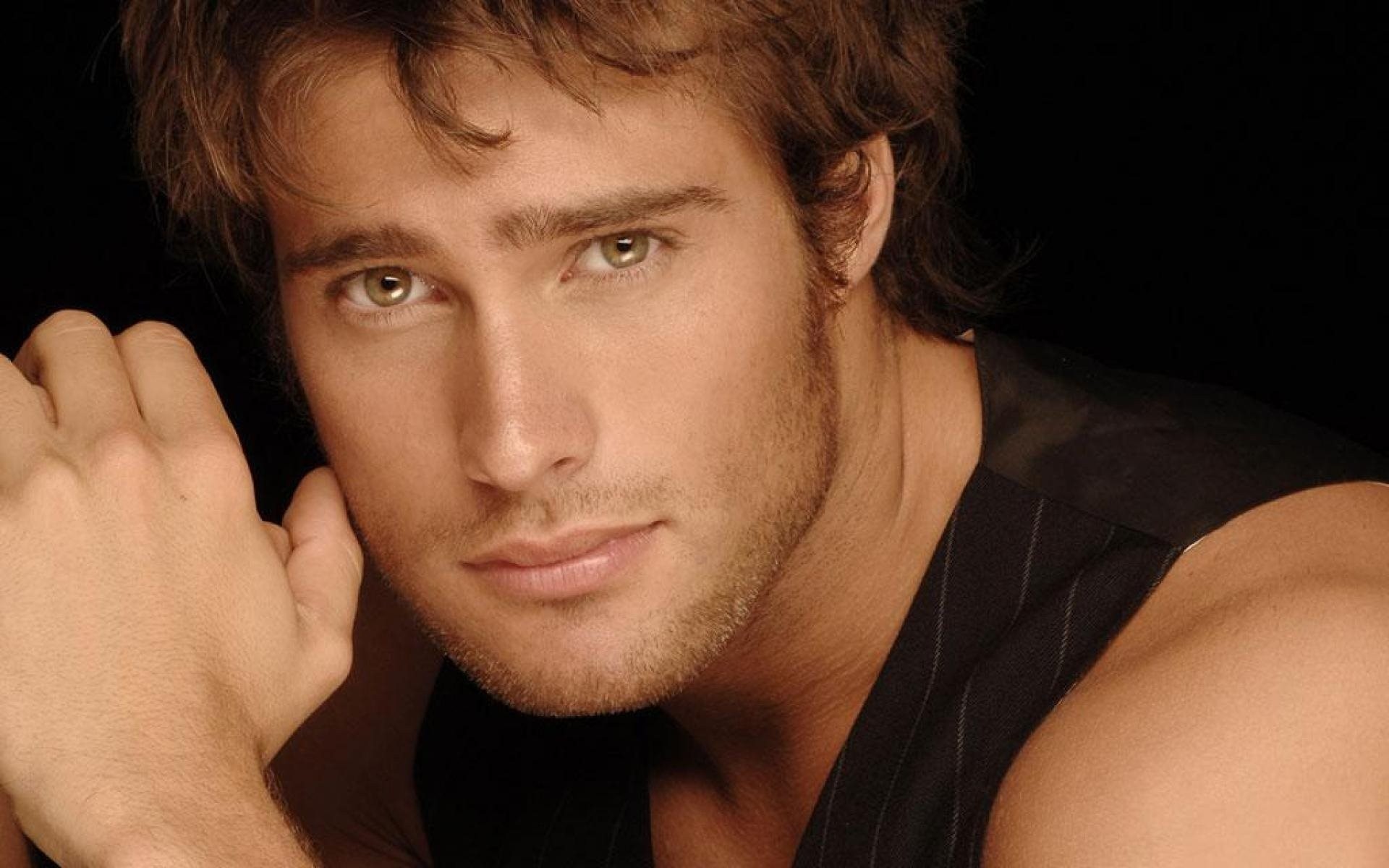 A guy in a red t-shirt looks at the sky near a white wallA guy in a red T-shirt looks at the sky near a white wall