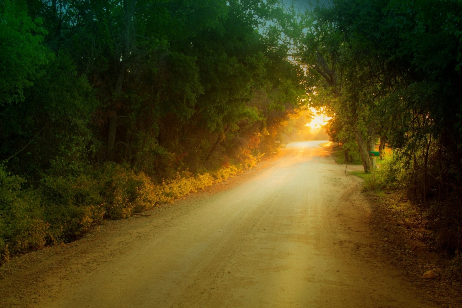 The dawn of a wonderful summer morning breaking through the trunks of trees