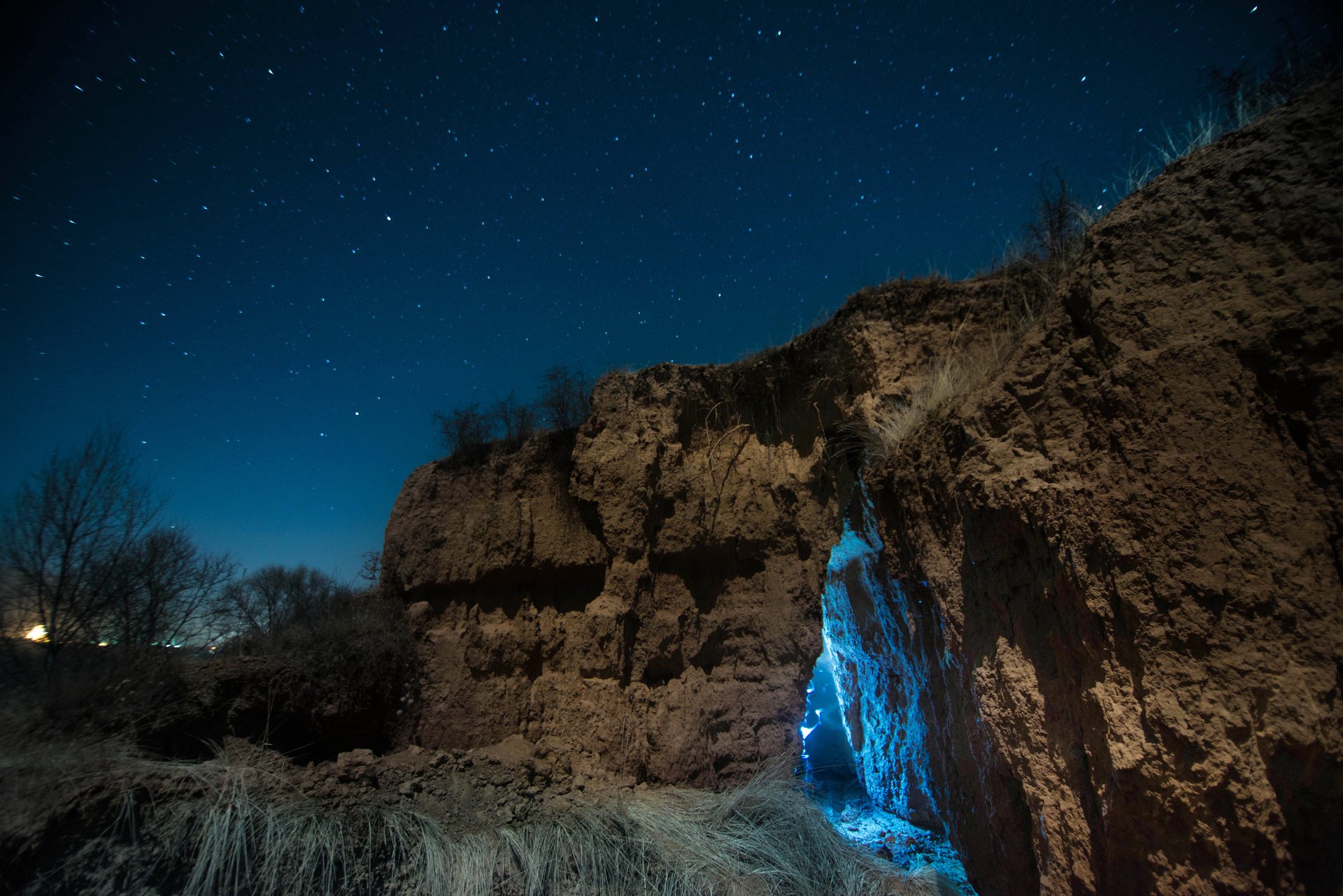 View of the night city from the window of a medieval castleView of the night city from the window of a medieval castle